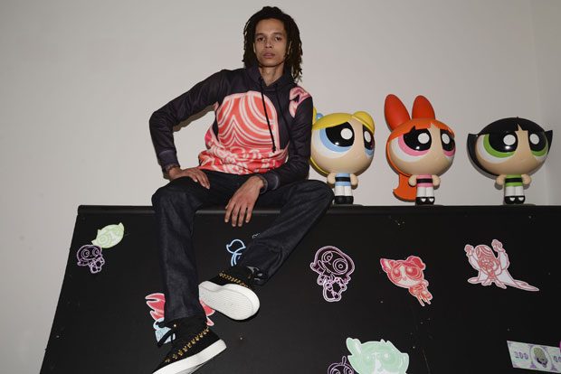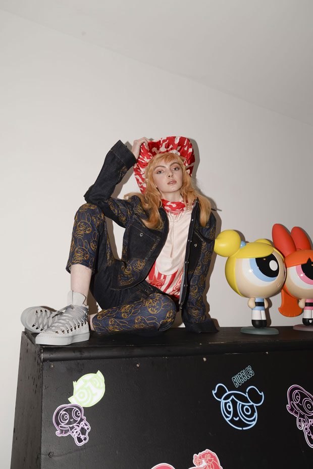 Discover Katie Eary’s first womenswear collection presented during the ongoing London Fashion Week. Made in collaboration with Cartoon Network’s Powerpuff Girls, the collection features tomboy cuts, bold prints and skate street luxe.