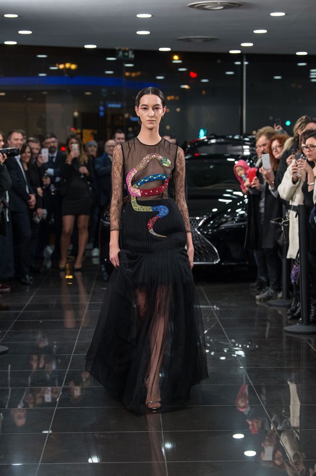 Liu Chao presented Spring Summer 2018 couture collection at the Lexus Etoile car dealership during the Paris Couture Fashion Week.