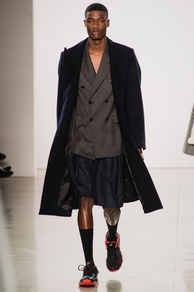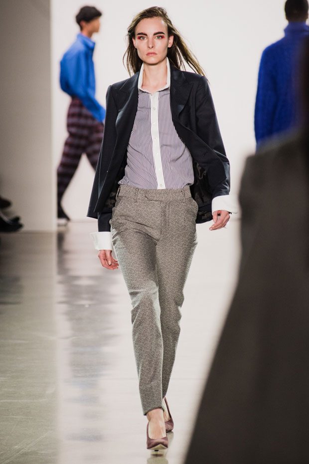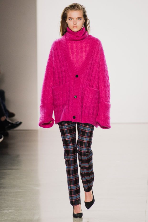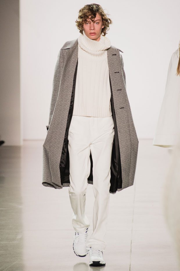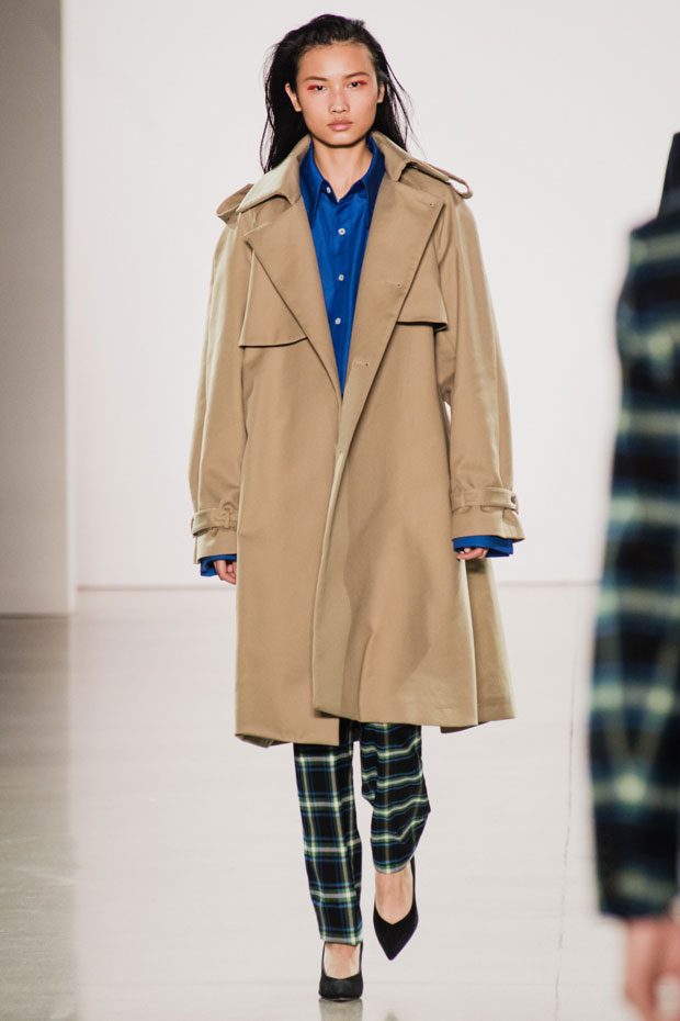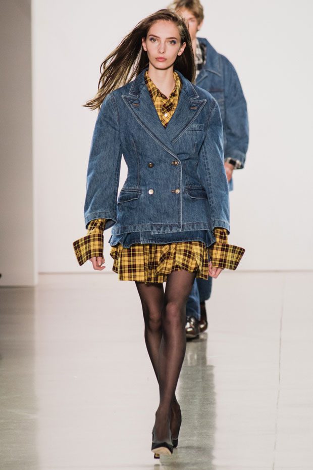 Matthew Adams Dolan presented his Fall Winter 2018/19 collection during the New York Fashion Week. Focused on a on a maturity and a function, the collection features plaid suiting in bright colors, wide-leg jeans, voluminous jackets and coats, as well as the workwear shirts and robust shoes.