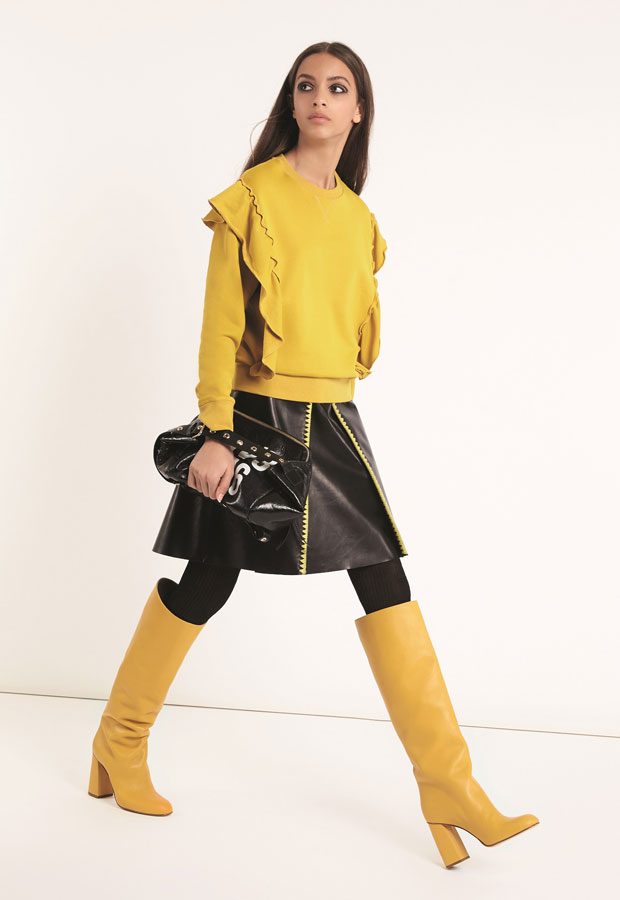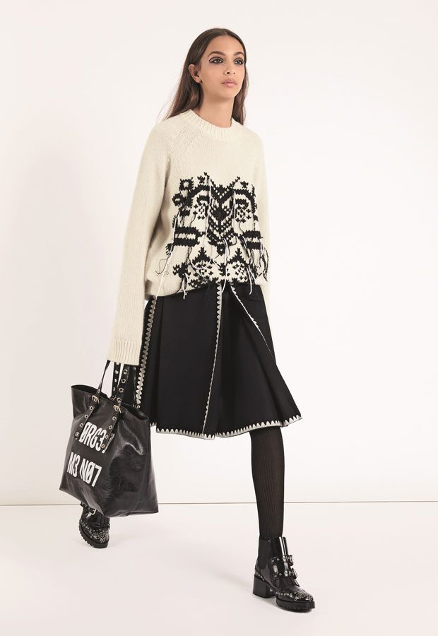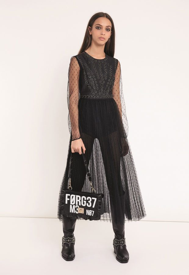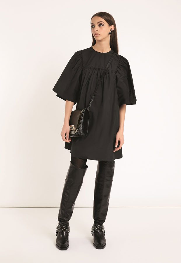 RED VALENTINO shares with Design SCENE its Fall Winter 2018/19 collection lookbook. Inspired by military strictness and Balkan baroque, the collection features greatcoats and duvets, airy dresses and pleated skirts, decisive outerwear and statement jumpers, the perfecto, the overblown varsity and the jean jacket. Color palette includes solid shades of blue, black, pink, white and grey, micro prints, dashes of metallic.