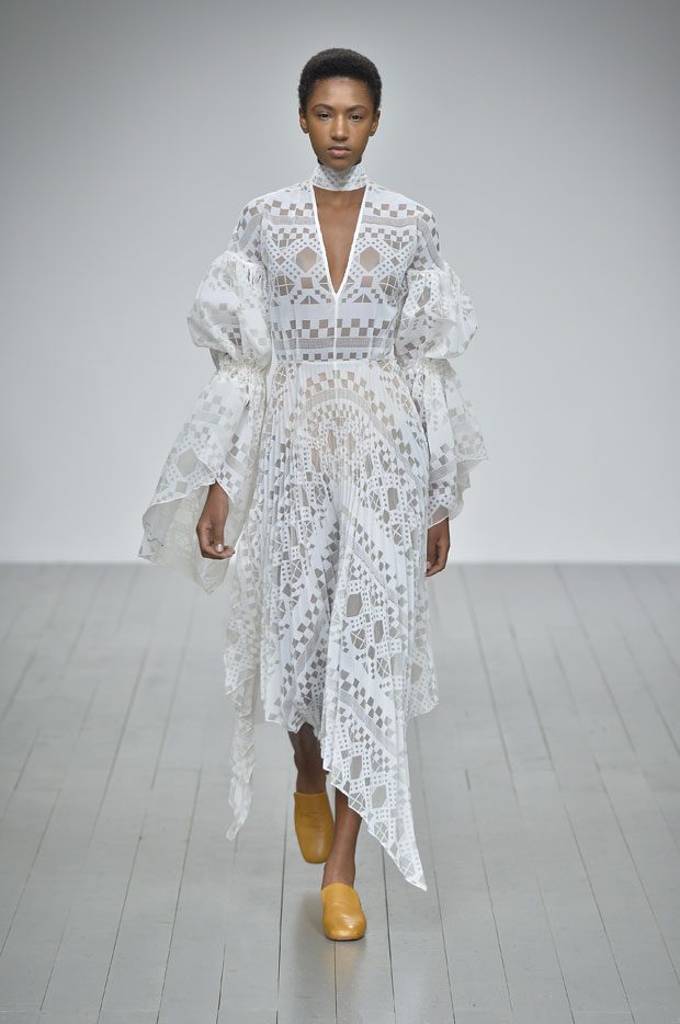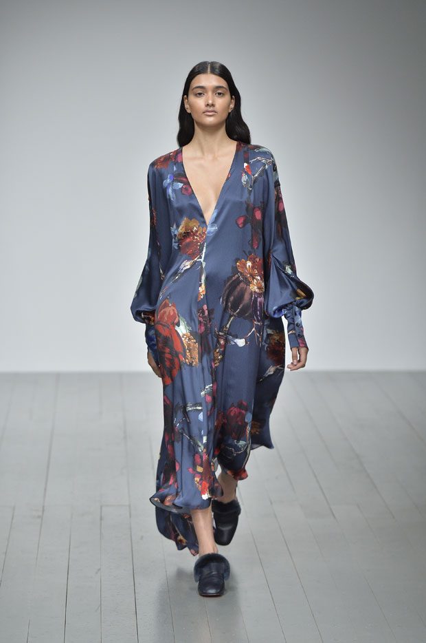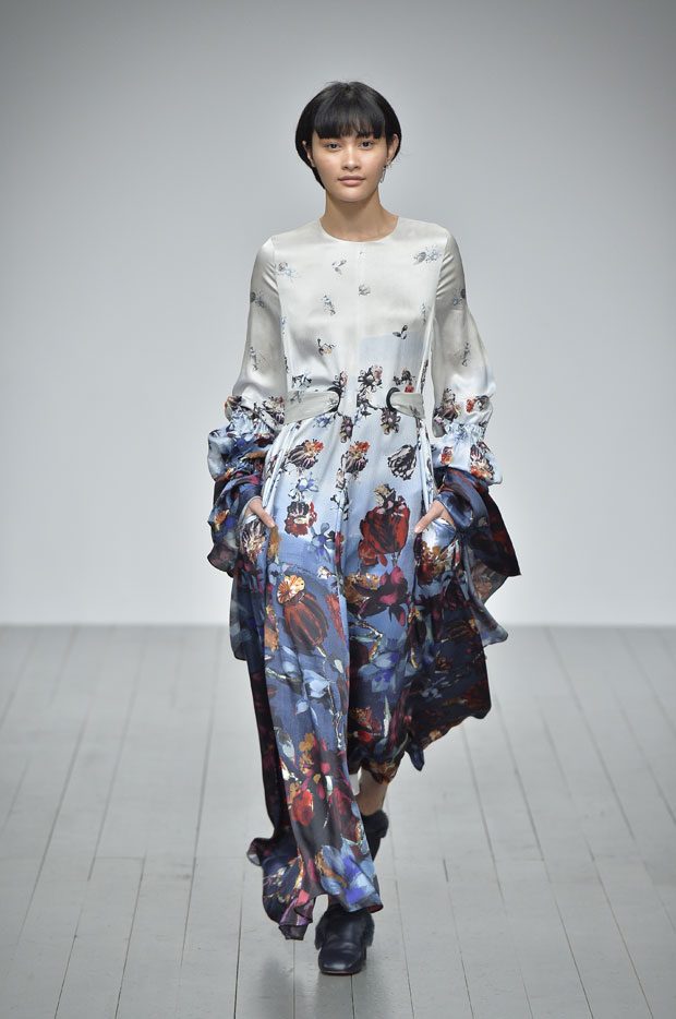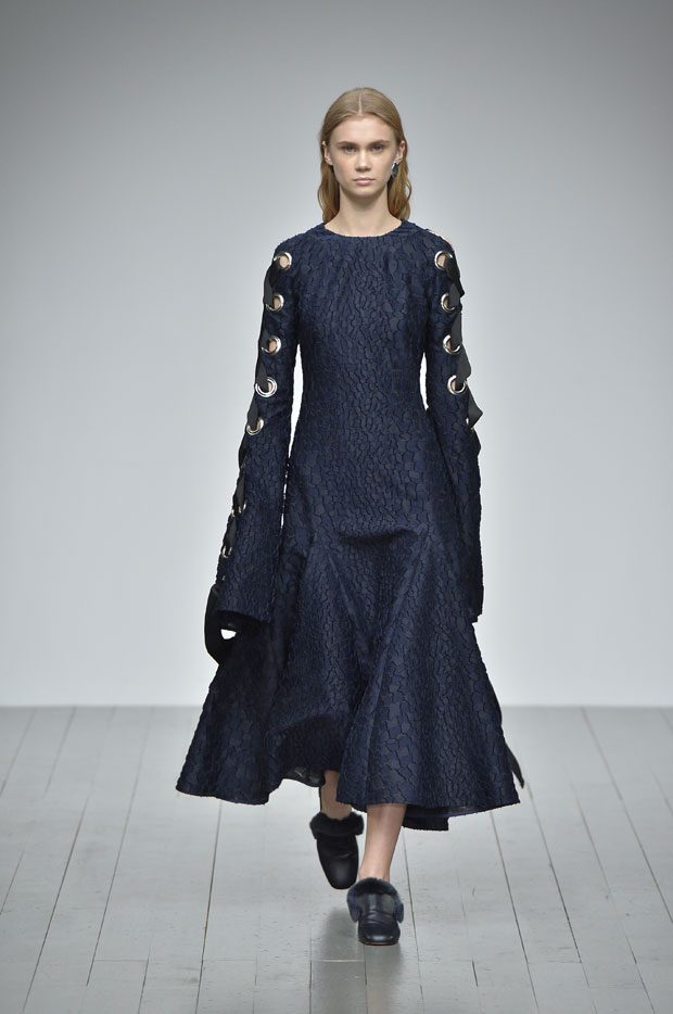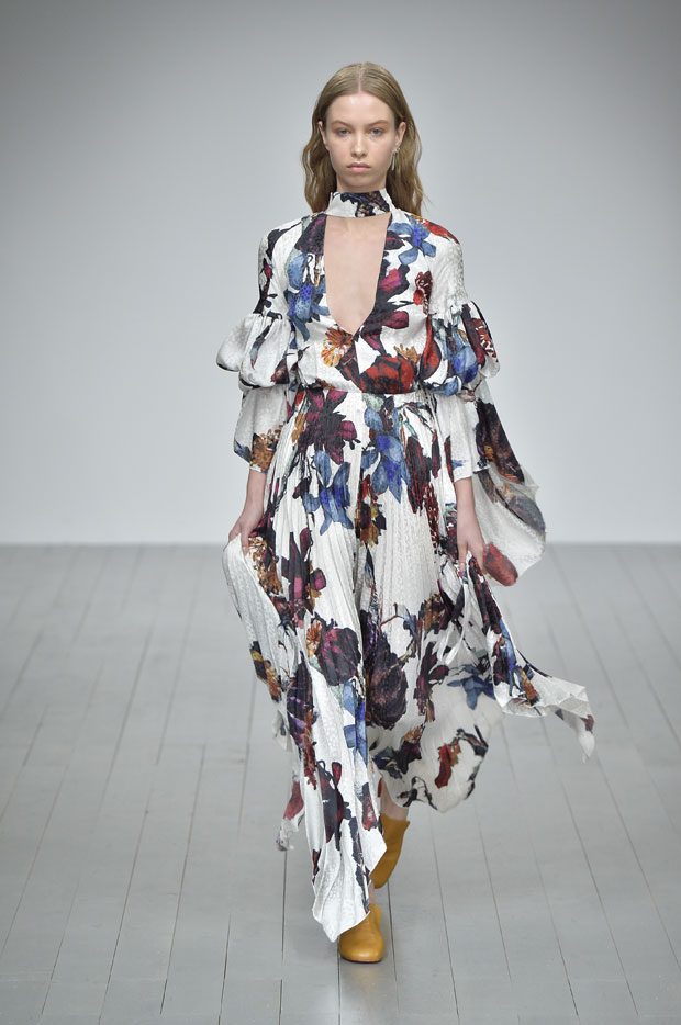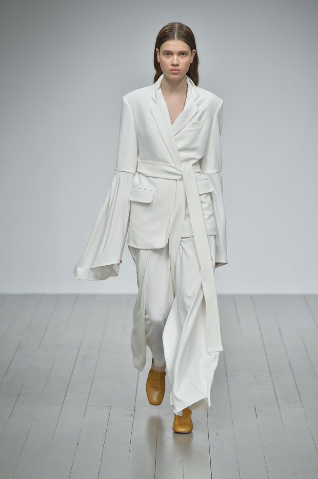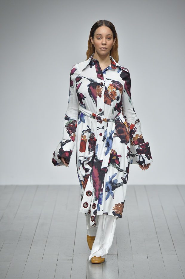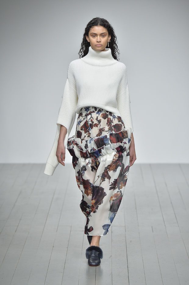 Discover Teatum Jones Fall Winter 2018/19 collection presented during the recently wrapped up London Fashion Week. Inspired by a collective of 25 unique women, the collection features a series of classic Teatum Jones silhouettes – signature oversized statement coats, tailored suits with belted eyelet straps and fluid, poetic dresses feature with tiers of gathered sleeves and asymmetric hem lines.