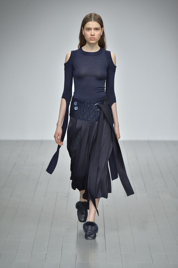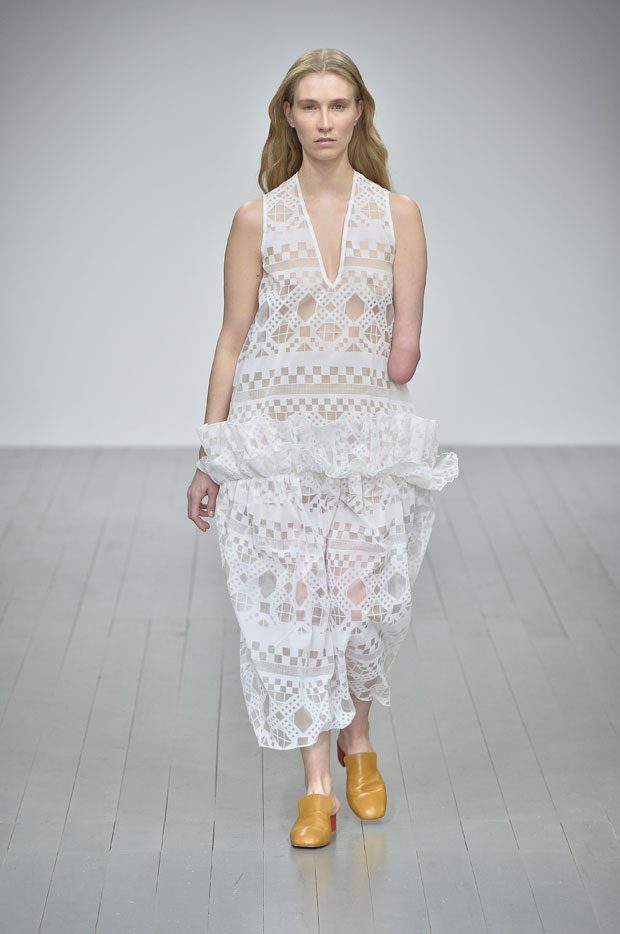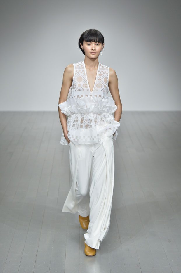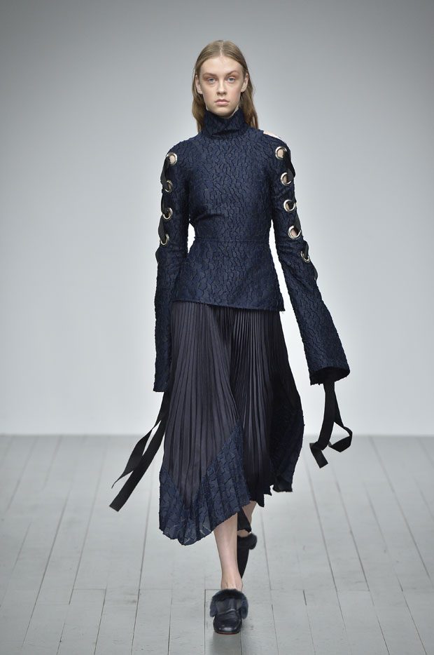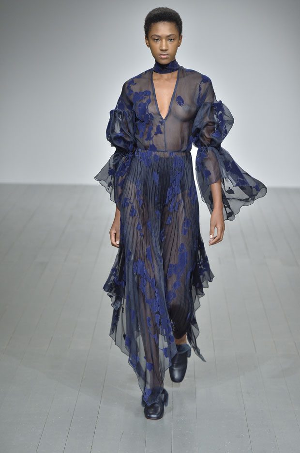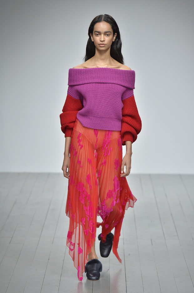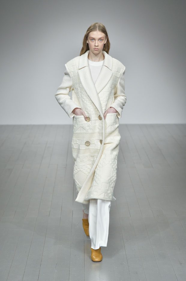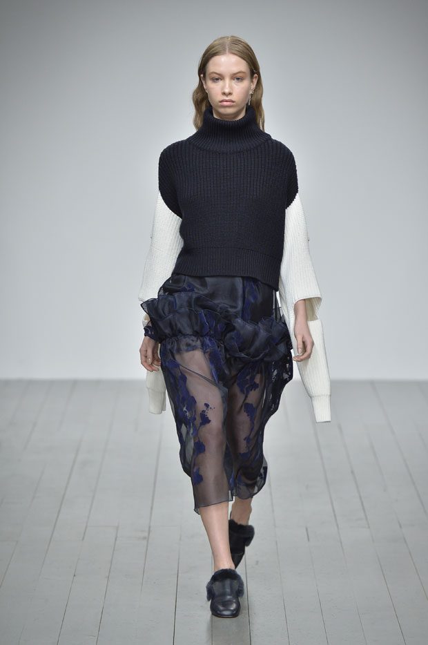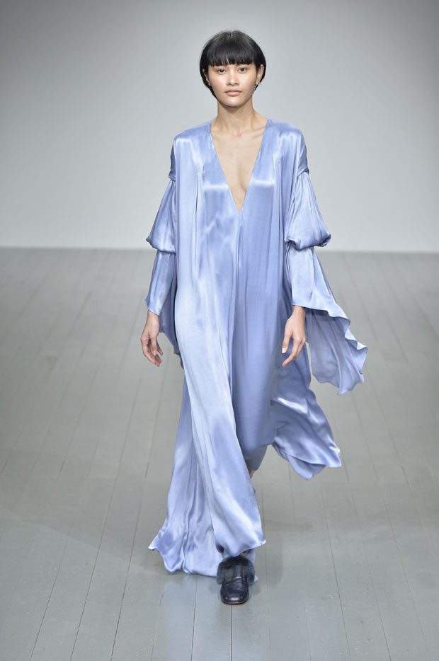 Discover Teatum Jones Fall Winter 2018/19 collection presented during the recently wrapped up London Fashion Week. Inspired by a collective of 25 unique women, the collection features a series of classic Teatum Jones silhouettes – signature oversized statement coats, tailored suits with belted eyelet straps and fluid, poetic dresses feature with tiers of gathered sleeves and asymmetric hem lines.