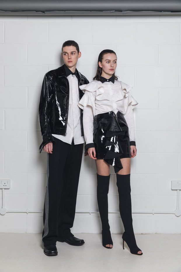 Creative Director Antonio Dominguez set up his studio in Mexico City following a decade of working with luxury fashion brands across Europe. Each collection is a chapter of his story, an expression of his continuous development of ideas that embrace vibrancy in a mashed up evolutionary world. CHAPTER TWO is a development from CHAPTER ONE, with the main focus being the aspirations of the designer’s life. Dominguez draws inspiration from interiors and architectural design; think of Luis Barragan, Anish Kapoor and Bofill, think of their sharp cuts and the symmetry which reflects in the silhouettes, cuts and construction of the AYCH garments. The main focus of the brand, which is repeated each season are the statement leather pieces, using ethically sourced leathers that are produced in a family run tannery in Toluca, a small town outside Mexico City. This tannery produces the skins from the very beginning, using a recycling plant for the water and an ethical process for the different colour-ways using only vegetable dyes. The process and the final finish of the skins are very important to Dominguez, which has let him to work very closely with the tannery, producing a variation of pantone colour-ways, different thicknesses of skins adapted to the seasonal demands to concluded with experimental finishes and treatments. – from Aych