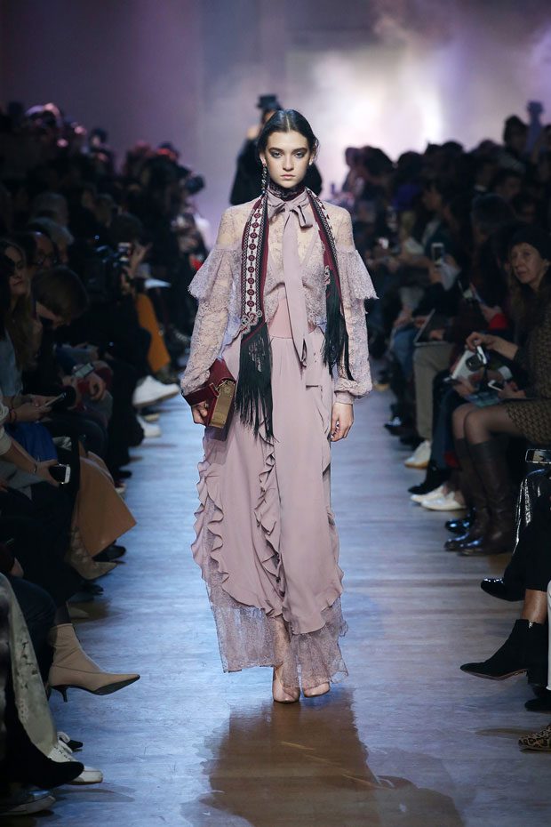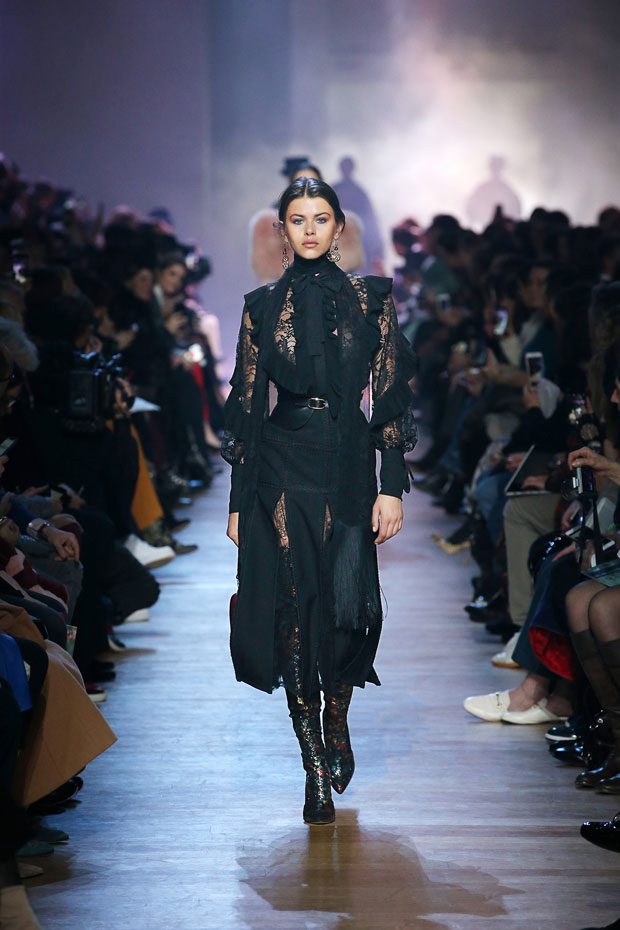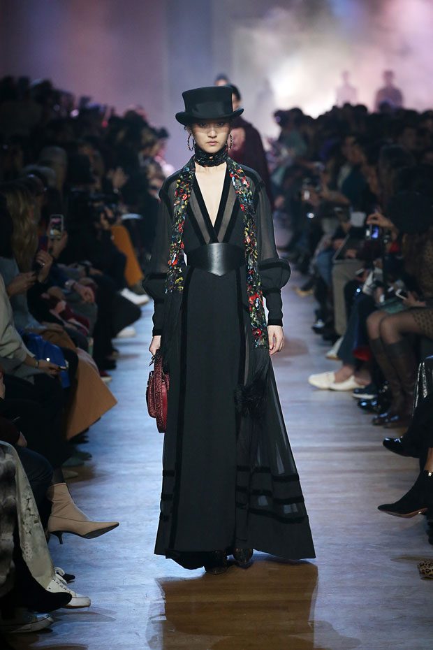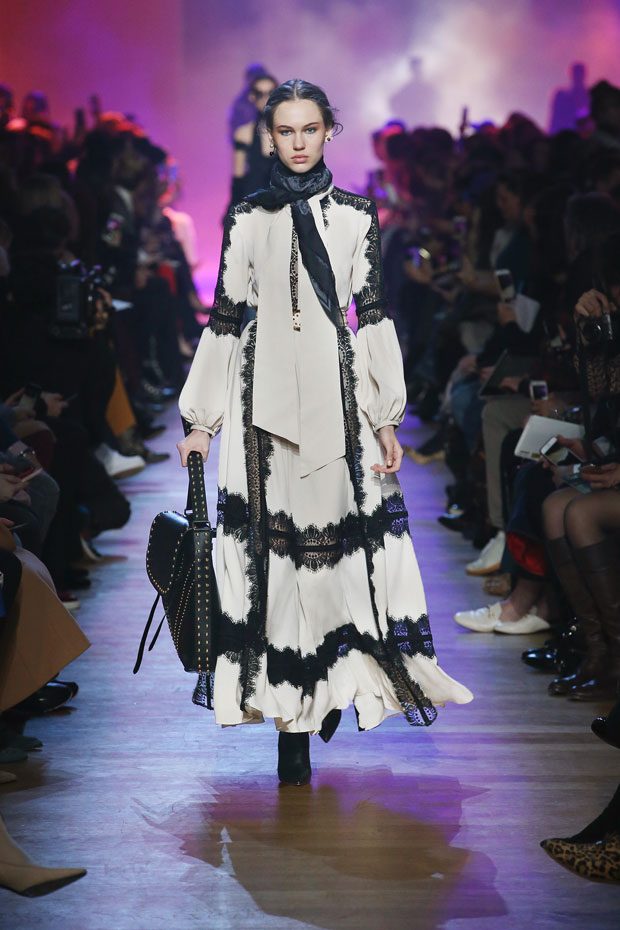 Discover Elie Saab‘s Fall Winter 2018.19 womenswear collection presented during Paris Fashion Week. The Fall-Winter 2018-19 Collection is inspired by the Victorian era— high necklines, ruffles, defined shoulders and statement sleeves.