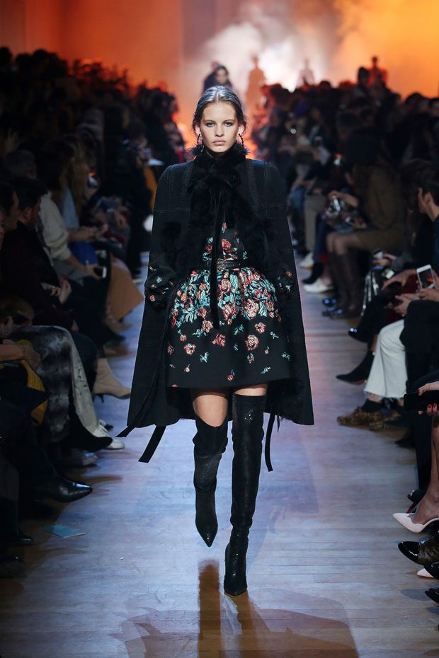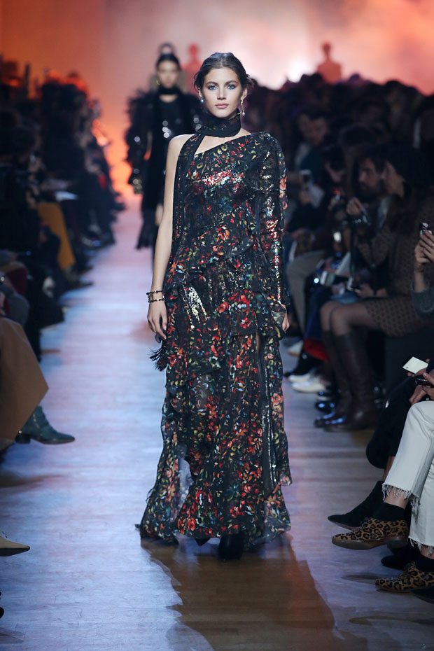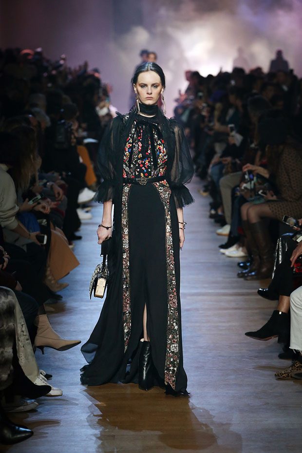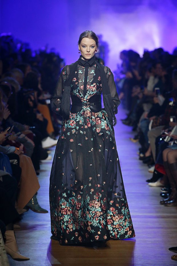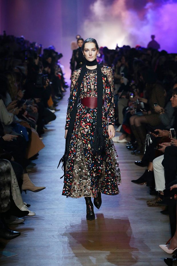 While the cold settles in, casting its grey hue over cityscapes, a flowery display takes over the ELIE SAAB Autumn Winter 2018-2019 Ready-to-Wear, as if capturing every last bloom and transforming them into a collection that exudes dark romance.