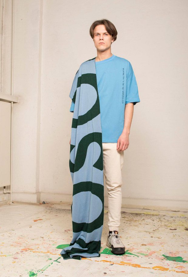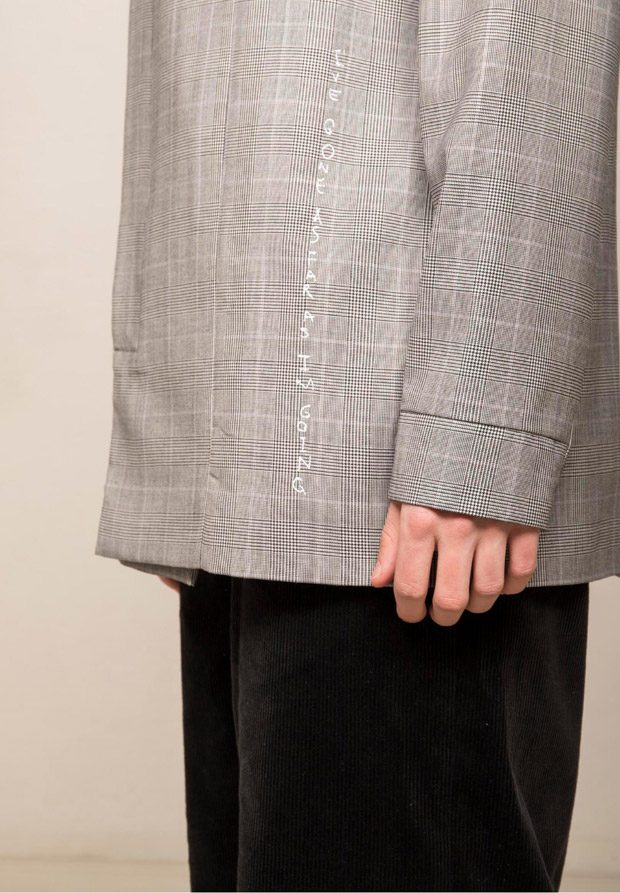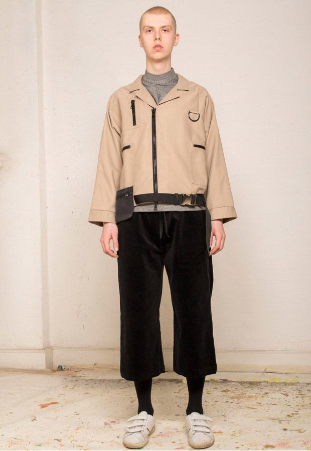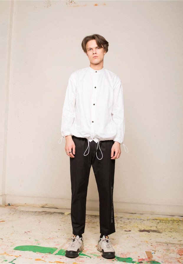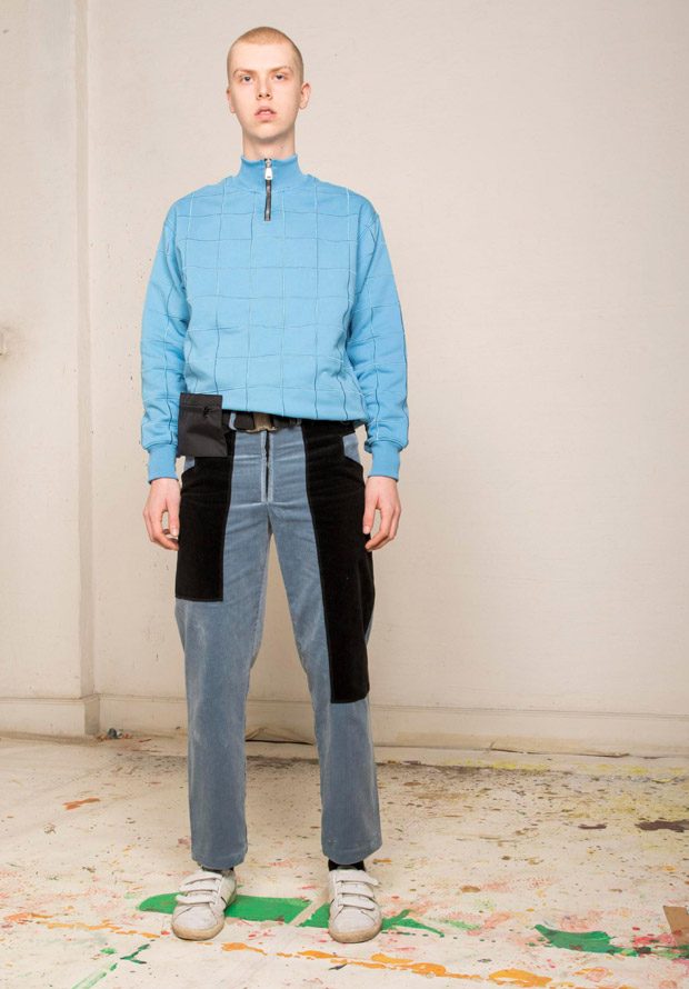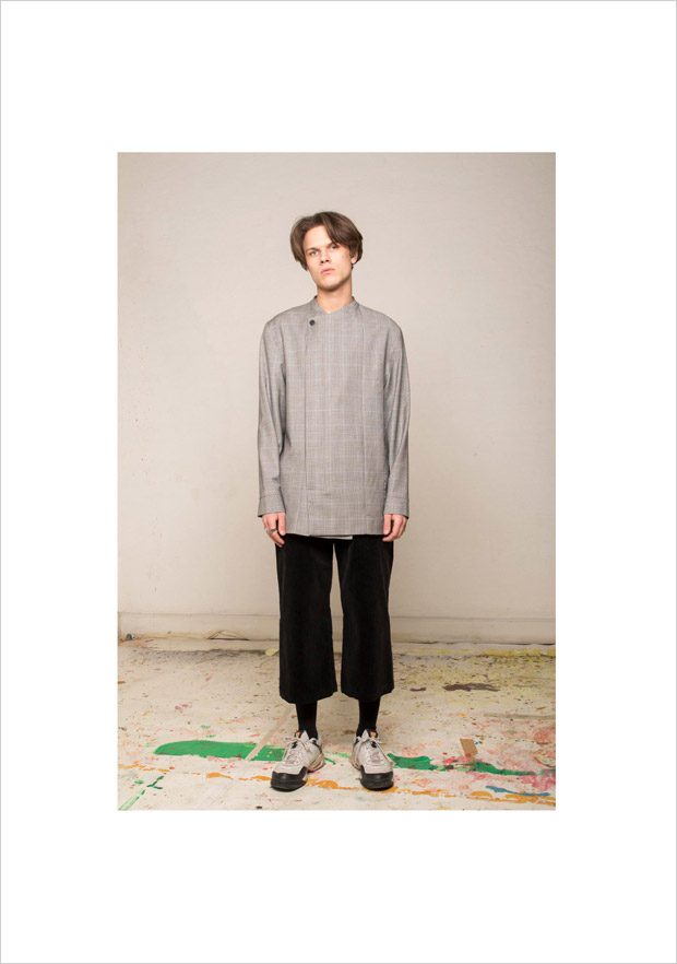“NOSOMNIA is known for its clever juxtaposition of textiles and silhouettes. For Fall/Winter 2018 the brand is introducing a series of uniquely designed fabrics, including Italian and Japanese suiting wool, lambskin, water resistant tech fabrics, jersey, corduroy and knitwear in Merino wool. The mood of the collection is rooted in the alienated and existential atmosphere of “The Man Who Fell to Earth” and the colour palette mirrors this, with fluorescent neon green and pale light blue to symbolize sky and space. The collection also features a mix of tailored and oversized silhouettes to embody the contrast between captivity and freedom.“