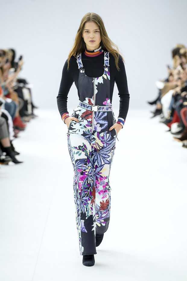 The LEONARD woman has organized her expedition with the greatest care: a ski suit, floral and belted, anoraks and puffer jackets with graphic details, technical garments cut out of silk, that allow her to face the elements.