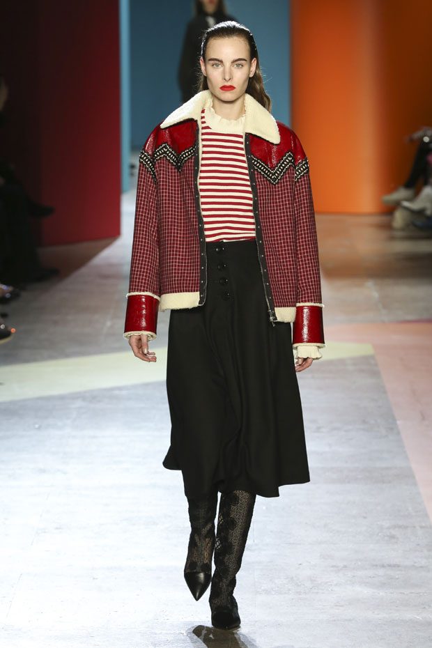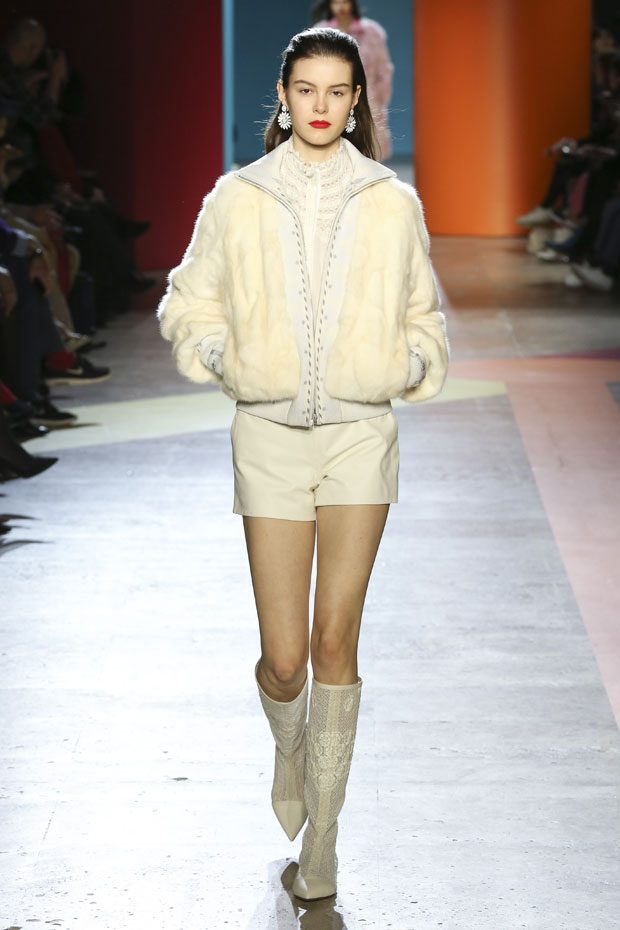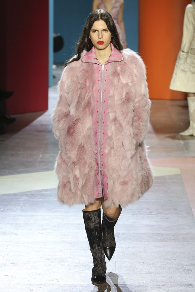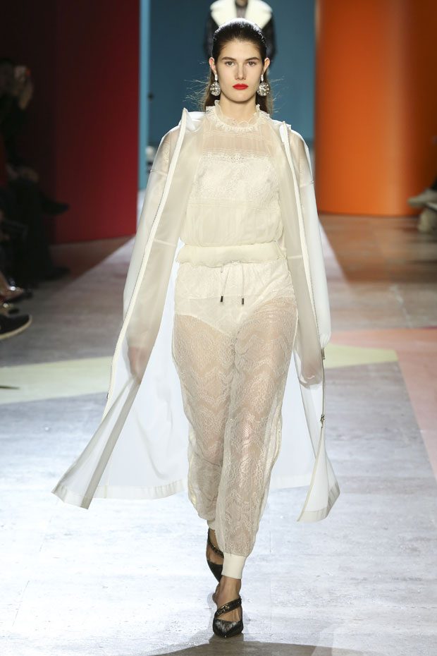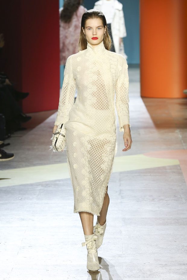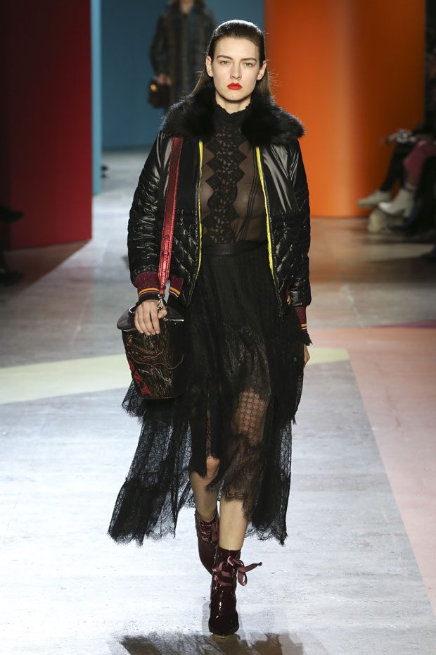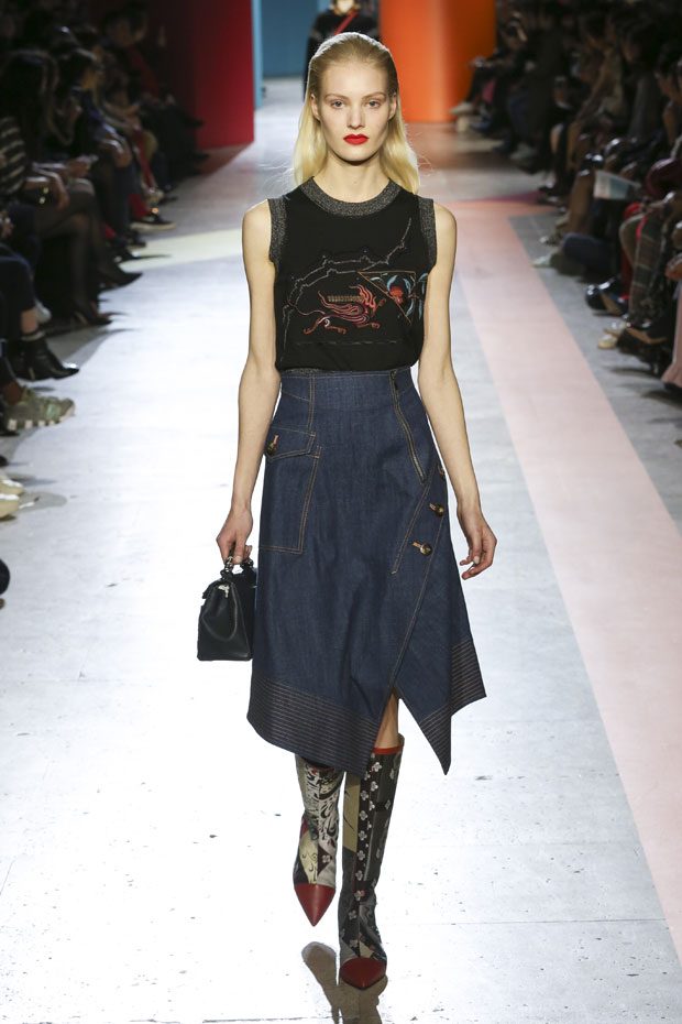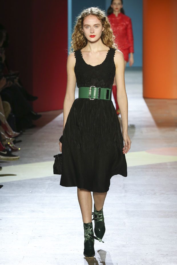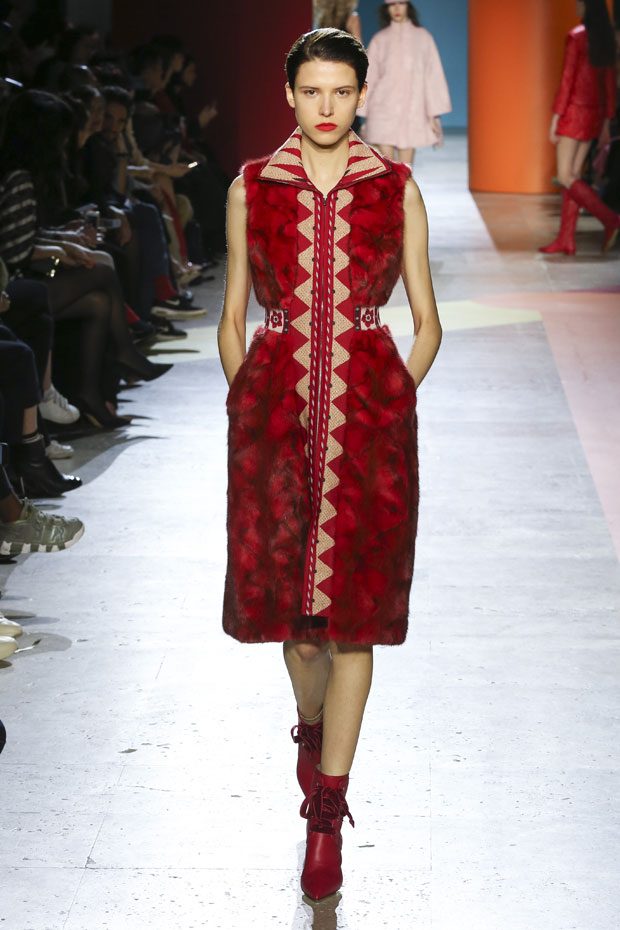 The rich coloring of the Dunhuang Murals inspired this season’s color palette—pale pinks, tender greens, golden yellows, indigo, beige, orange, bronze and ink black. The inspiration for the unique fabric patterns can also be found in the Dunhuang Murals, which have witnessed the rise and fall of dynasties and seen countless artisans from different eras. To hark back the most elegant and iconic era of new western fashion, moreover to express the ultimate unique beauty of women. Use by exquisite wools mixed with metallics and rubber latex that add a futuristic, avant-garde touch and embellished with retro, colorful socks. Sleek, knee-length trench coats, A-line silhouettes with wasp-waisted, and bouffant skirts are all tailored to present a woman’s figure at its best. – from Shiatzy Chen