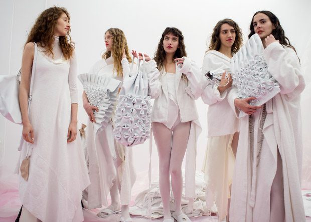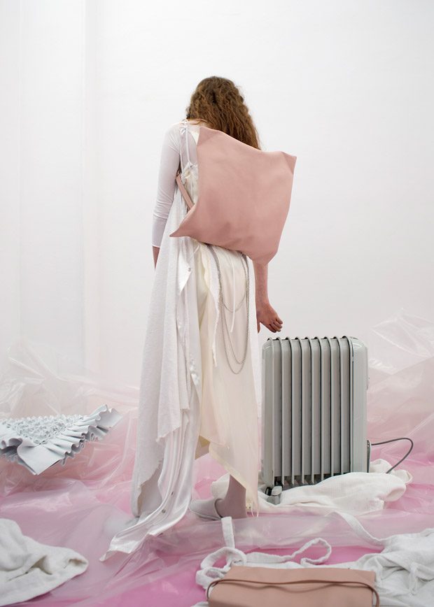 Fashion designers Magda Brozda and Pauline Famy teamed up with Swiss artist Mariel Manuel for WORN‘s Fall Winter 2018.19 Bag-Like Objects collection presented during the ongoing Paris Fashion Week. The collection was inspired by everyday objects and basic forms emphasizing the beauty of simplicity.