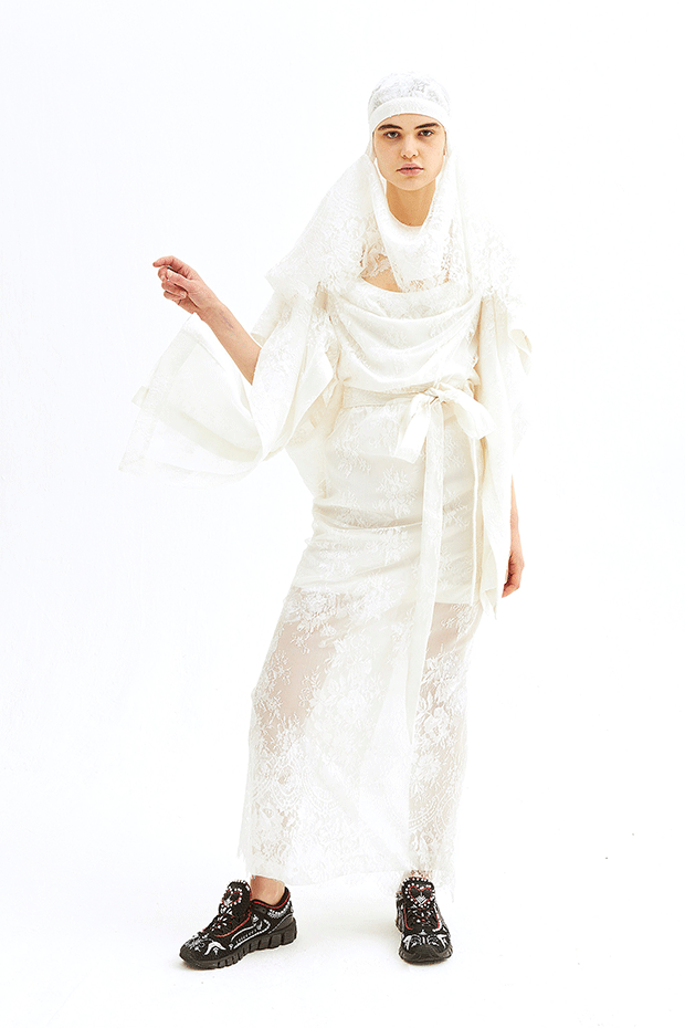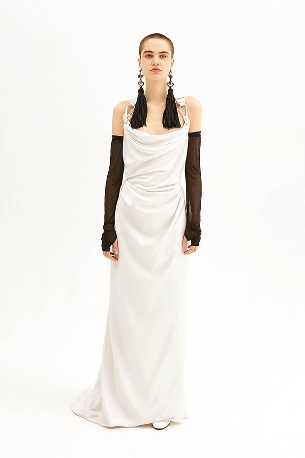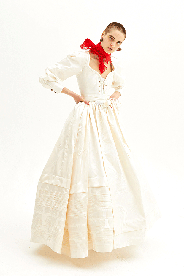 Andreas Kronthaler presented his first bridal collection for Vivienne Westwood prepared for Spring 2019 season. The collection features all kind of bridal and not so bridal garments, from jackets and trousers to corsets and gowns and it was a true homage to Vivienne Westwood herself and her work in fashion.