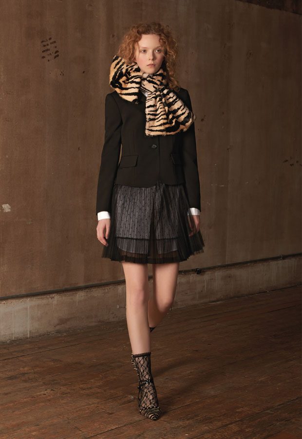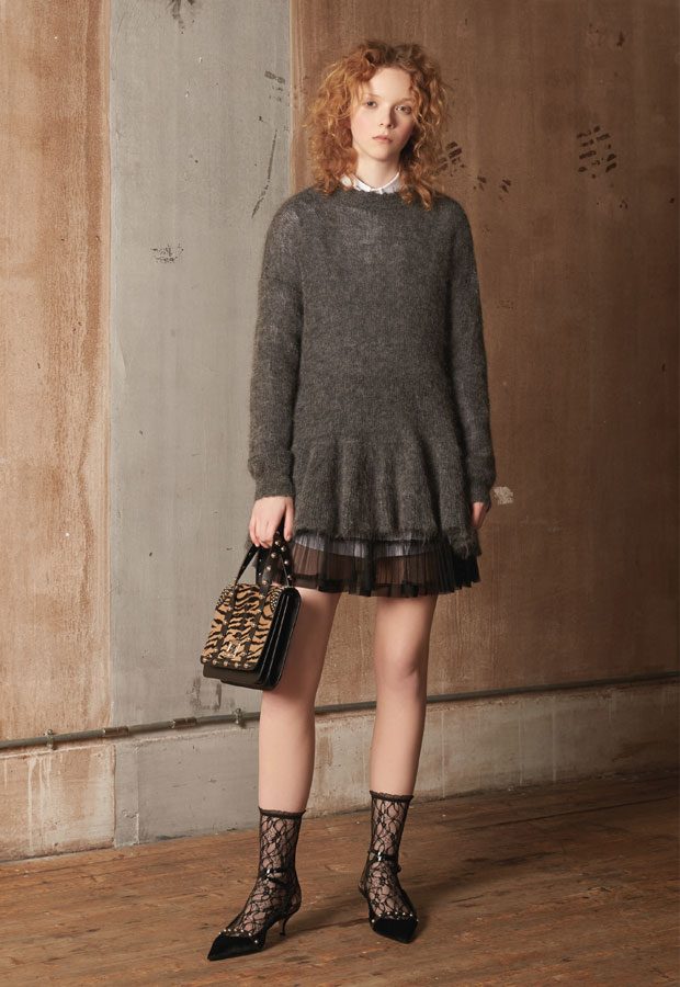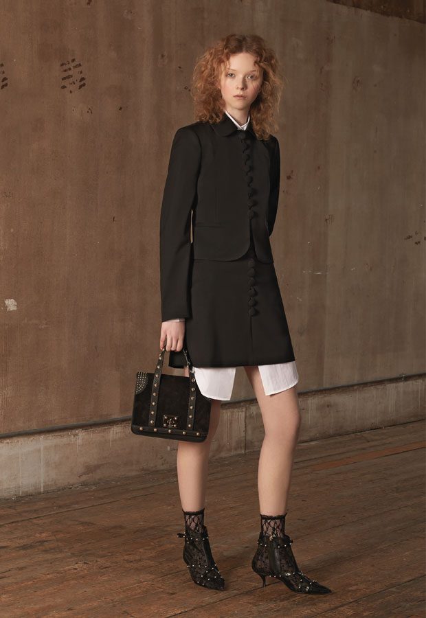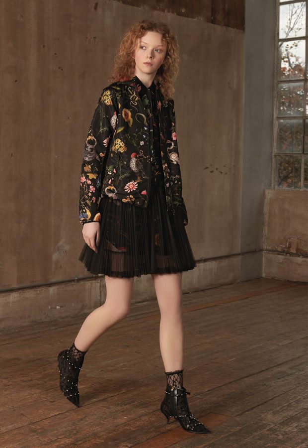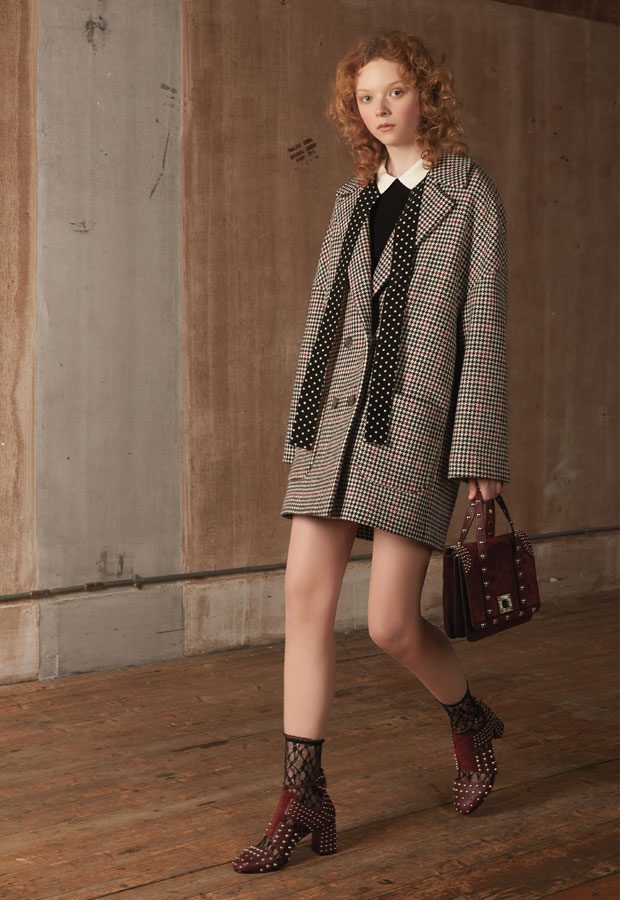 Breaking the rules to make one’s own rules. Subtly. Gently. Stubbornly. Style as a set of personal laws. Convention as rebellion, rebellion in convention. Using method, instinct and will. The freedom to play with archetypes, taking things here, there and everywhere. Adding one to the other, defying age, space, time. Subverting norms, delicately. Mixing strictness and gentleness, exuberance and calm, past and present to blend a different take on romance. A repertoire of classics: the little coat, the little dress, the white shirt, the shorts. Capes, duvets, airy tulle dresses. The trenchcoat and the romantic gown. The cozy jumper. In classic shades of black, camel, cream, red, light blue. A vocabulary of textures: angora, tweed, tulle, leather, silk. A roster of patterns: botanical motifs, mannish checks, animalier spots and stripes. A zing of soft aggressiveness: studded bags, spiky heels, wild scarves. The pussy bow as a sign. Lace socks everywhere. Heralding calm and twisted classicism as the ultimate defiance. The new rule that breaks old rules. Quietly. – from REDValentino