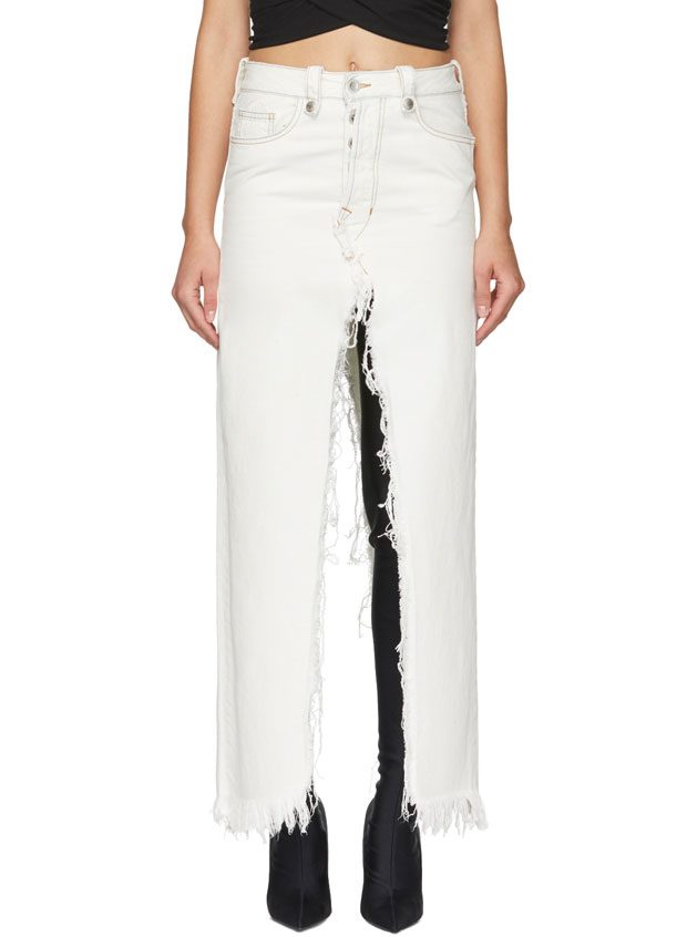 UNRAVEL White Rigid Denim Deconstructed Long Skirt