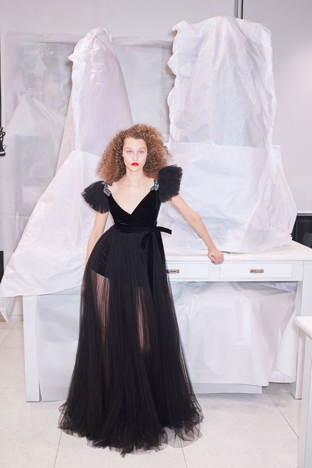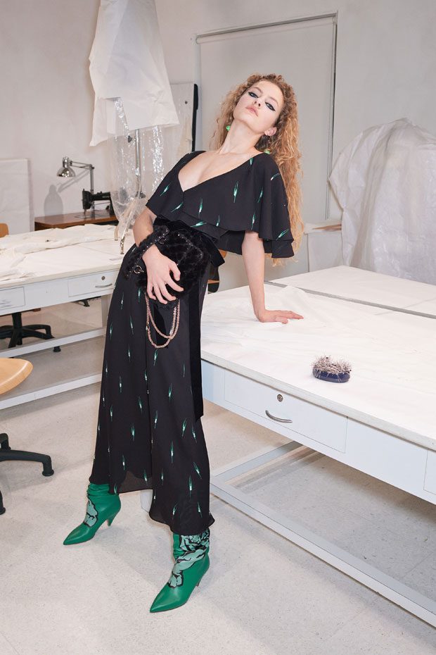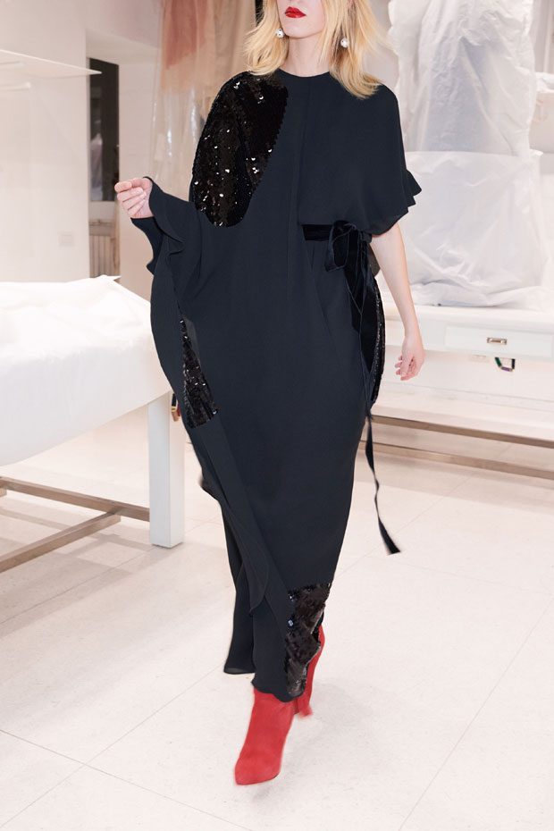 Novelty is what one is not familiar with. Novelty is the past, if discovered to remain in present times. The gaze traces the path; the eye detects and connects. Very Valentino. Glamour. Individualism. Hedonism. The values that have defined a decisive moment of the Maison, today. Deciphering the combination to picture modern times. An exploration of the iconographies of the Maison’s archive: the tiger from 1967, the dragon from 1968, the snake from 1971. An extravagant bestiary: a change in perspective cadenced by pois, enlightened by crystals.