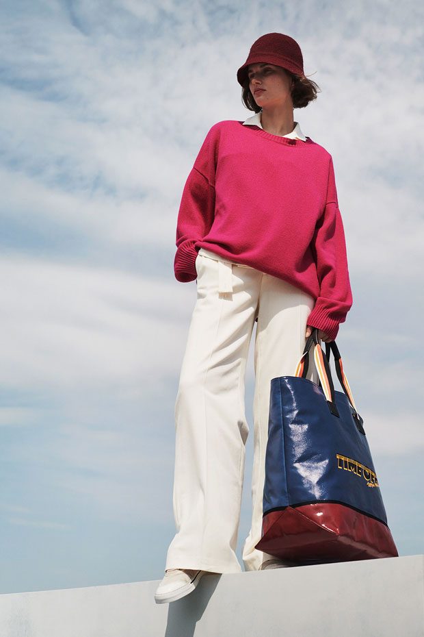 Discover Tomas Meier‘s Resort 2019 collection inspired by New York’s early hip-hop scene and the Spike Lee movie She’s Gotta Have It. Featuring the slogan t-shirts and fanny packs, as well as the oversize proportions and retro details, the collection is a real surprise from Maier.