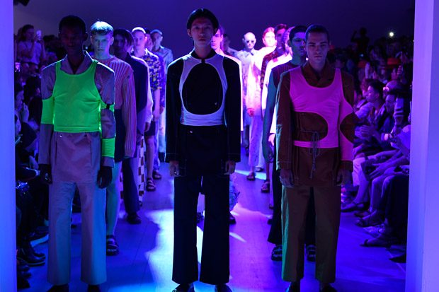British menswear designer Alex Mullins presented his Spring Summer 2019 Menswear Collection, on Sunday June 10th, during the ongoing London Fashion Week Men’s. The collection features 27 looks in a series of nine triptychs.