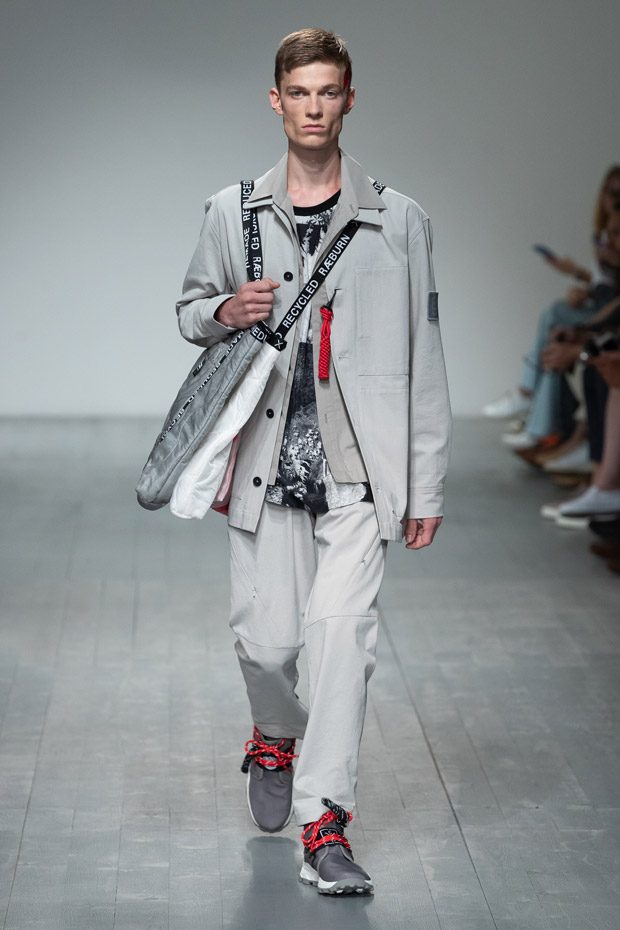 Discover Christopher Raeburn‘s Spring Summer 2019 Remade, Reduced, Recycled Collection presented on June 10th, during the ongoing London Fashion Week Men’s. Every look from the collection was made out of remade and recycled materials. London based designer also debuted several exclusive, runway-only pieces from his capsule collection with Timberland. The Limited Edition of Timberland x Christopher Raeburn Men’s Capsule Collection – will launch in October 2018, and it will include a bomber jacket, reversible fleece, and short and long-sleeve t-shirts, while broader assortment of outerwear, tops and bottoms will be available across the globe in Fall 2018.