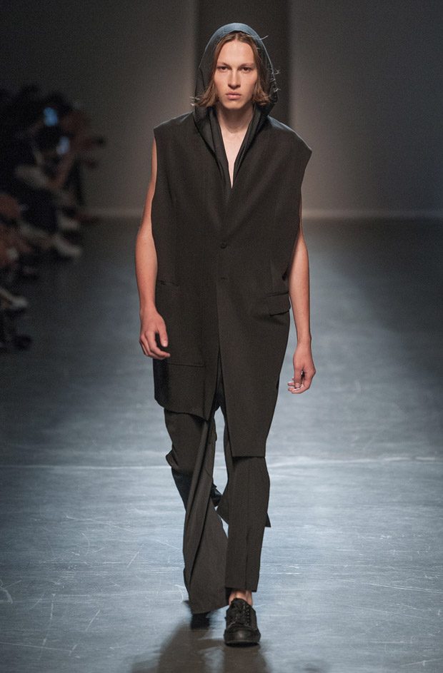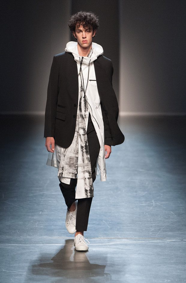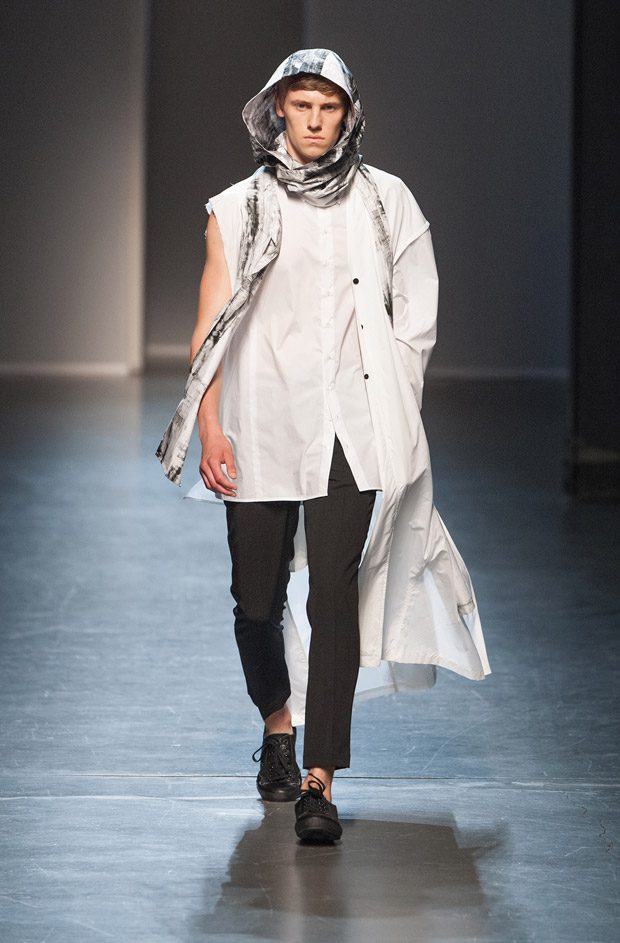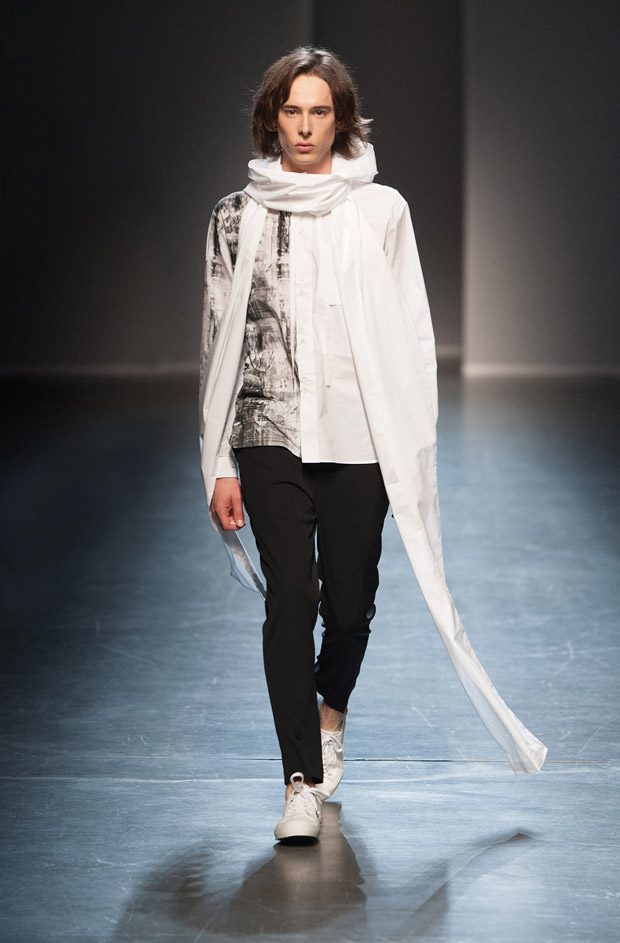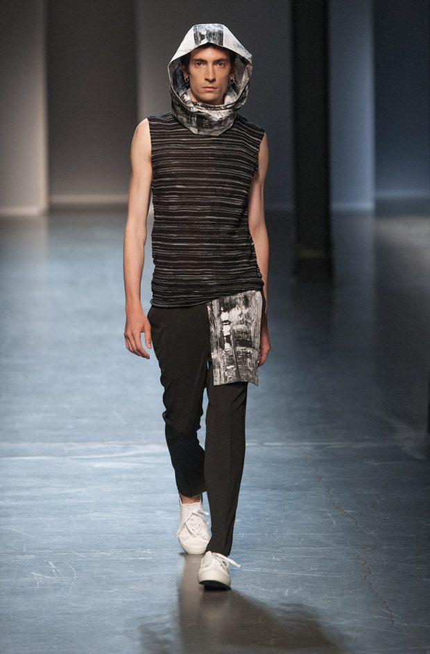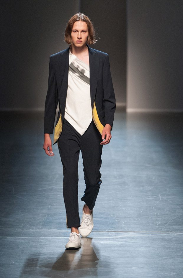 “Movement and transposition are the main forces at work here to modify certain elements within a specific order. Yellow turmeric and deep purple prints enlighten the black soul at the heart of all this. Black, the unique and absolute color, and white, its opposite, remind us that it’s possible to be both one thing and something else completely different.“
