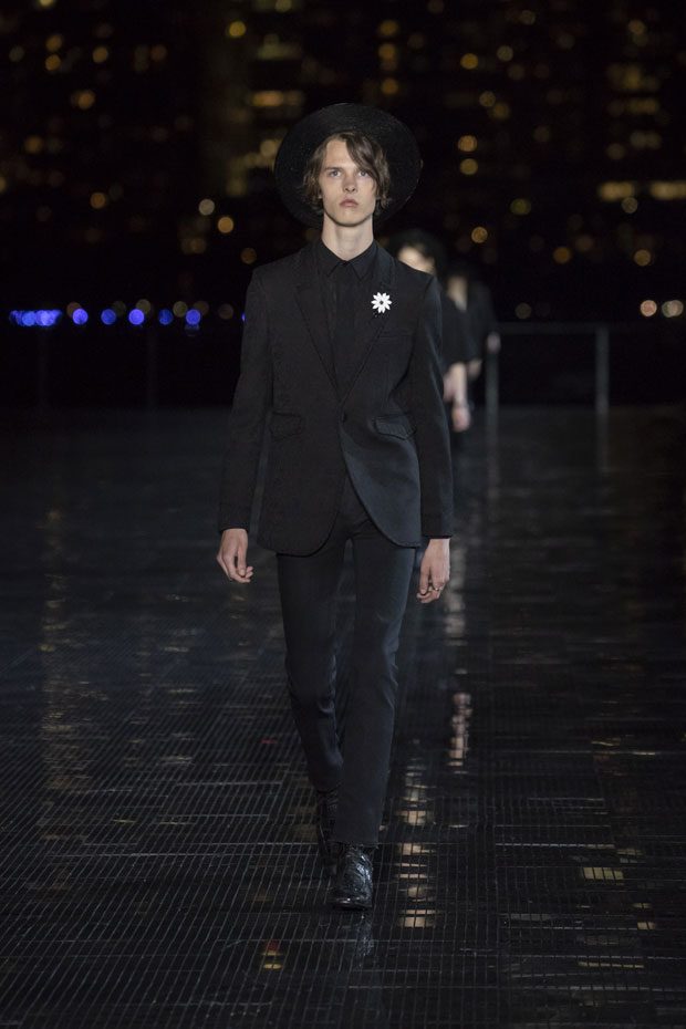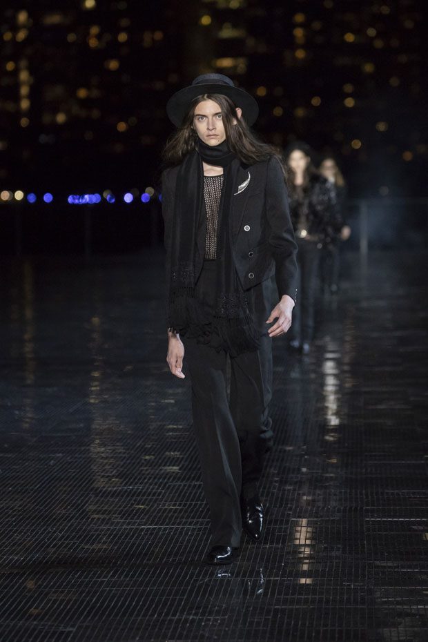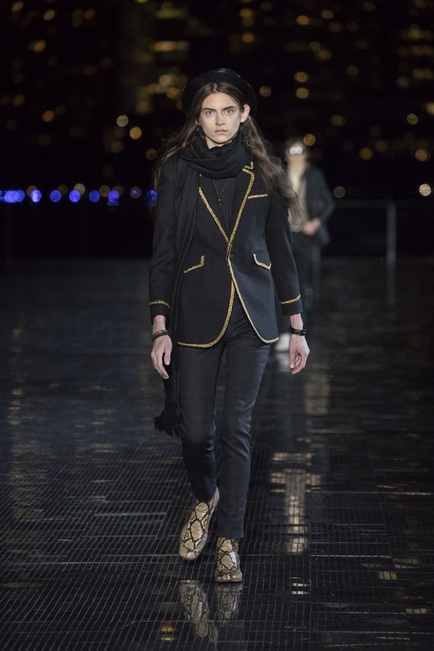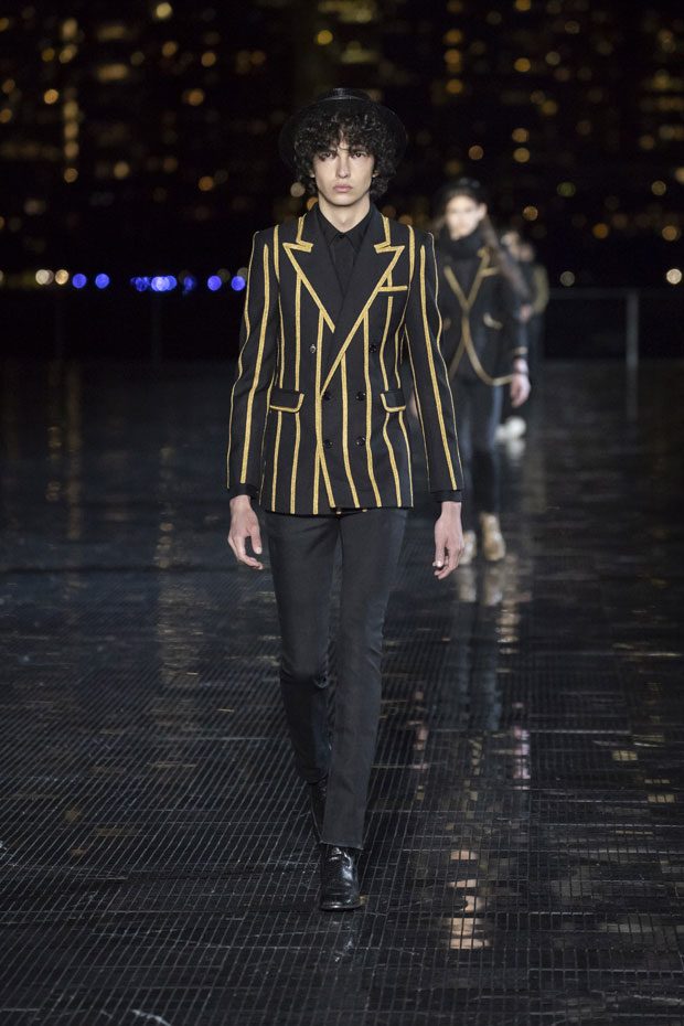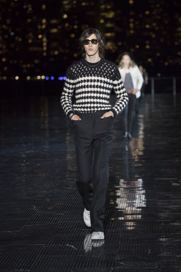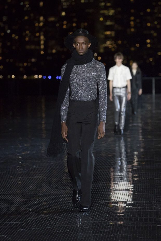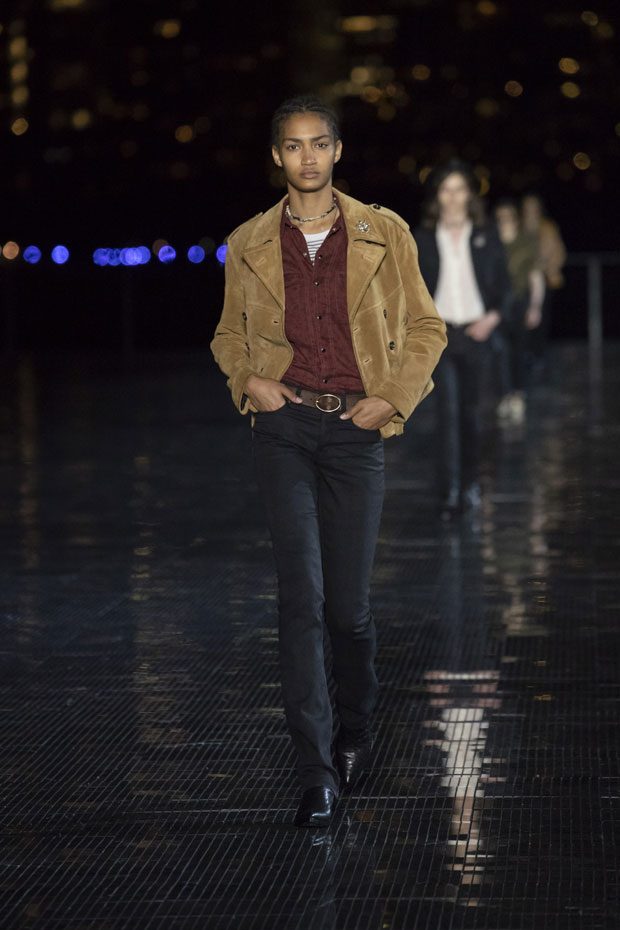 New York is freedom, a city brimming with energy and possibilities: the perfect backdrop to frame the spirit of this menswear collection. Crossing wardrobe boundaries, dressing women too. –Anthony Vaccarello