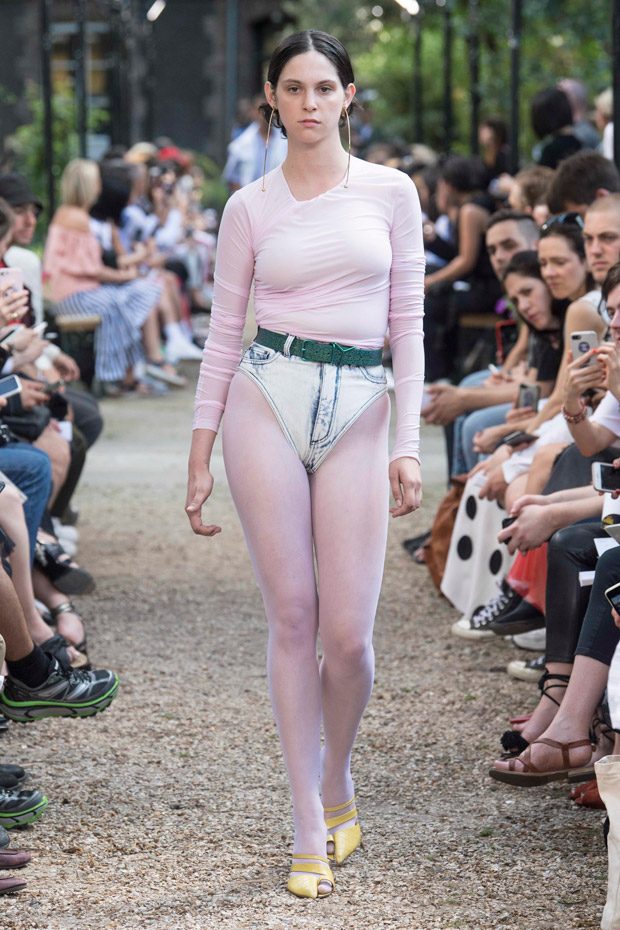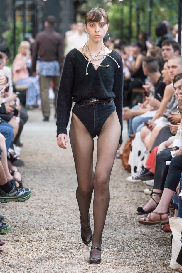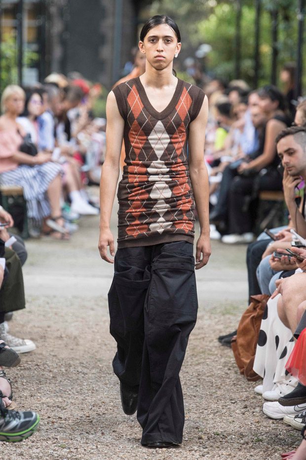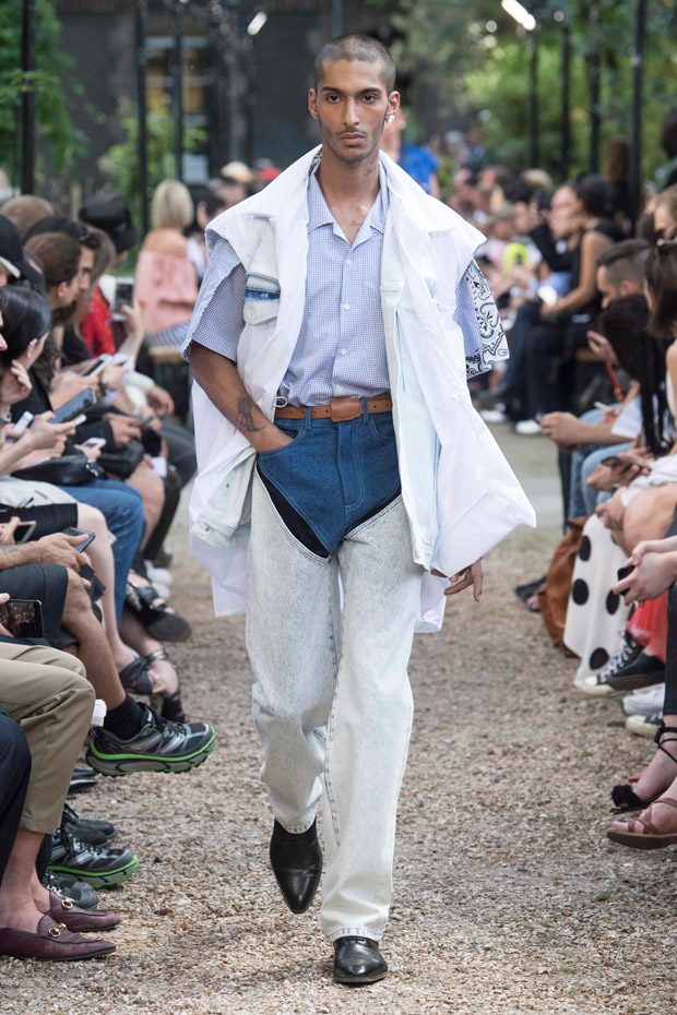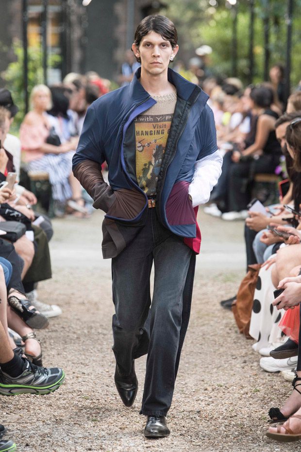 Discover Y/PROJECT‘s Spring Summer 2019 Collection presented on Wednesday June 20th, at la Faculté de Pharmacie de Paris, during the second day of the ongoing Paris Fashion Week. For the collection designer Glenn Martens created contrasting elements that work as an harmonious eclectic ensemble, and also introduced new silhouettes through an innovative “Christo-esque” technique of wrapping lycra and nylon around blazers, coats, hoodies, bodysuits and minidresses.