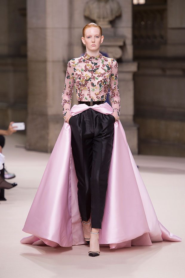 This collection strays from the overtly sexy aesthetic Galia Lahav is typically known for, and instead is more flirtatious and free in its silhouettes and shapes. Bold and fresh colors like acid and emerald green, ice pink and denim blue give the collection a more playful air, while natural colors like black and nude help ground the looks in maturity and womanhood. And God Created Woman is designed for the Juliette Hardy within us, a woman who is adamant in celebrating her youth, expressing her inner beauty and grasping her independence. This collection can be broken down into moments in which the wearer is fresh and matured, rooted and free, vibrant and earthy. The plethora of silhouettes include jumpsuits, corset tops and t-shirt dresses. The bold floral patterns which contrast the softness of the sheer tulles use shapes and styles to mark the phases of a woman’s evolution. The intent is for the wearer to be encouraged to blossom into her true self, to utilize the collection to showcase her self-expression and individuality. – from Galia Lahav
