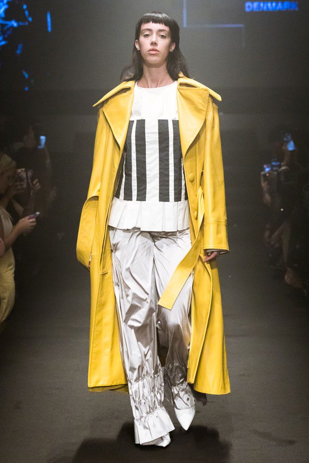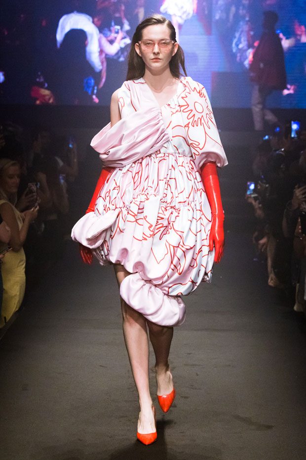 The performance takes place in the well-known Bankside Vaults, welcoming an audience of fashion professionals, including press and industry experts. Taking inspiration from the concept of light as a symbol of new beginning, the 10 collections showcased in a hybrid performance, merging a traditional catwalk with a static presentation. The visionary use of light, along with the minimalist set-up of the venue and its fascinating vaults, create a dreamlike atmosphere enhancing the colours, details and silhouettes of the School’s 10 best Womenswear collections. – from Istituto Marangoni London