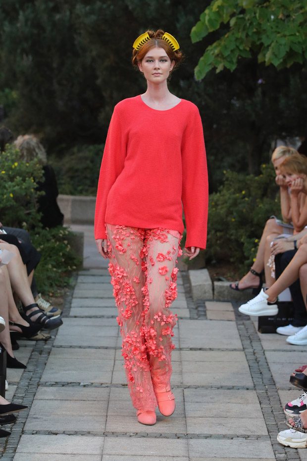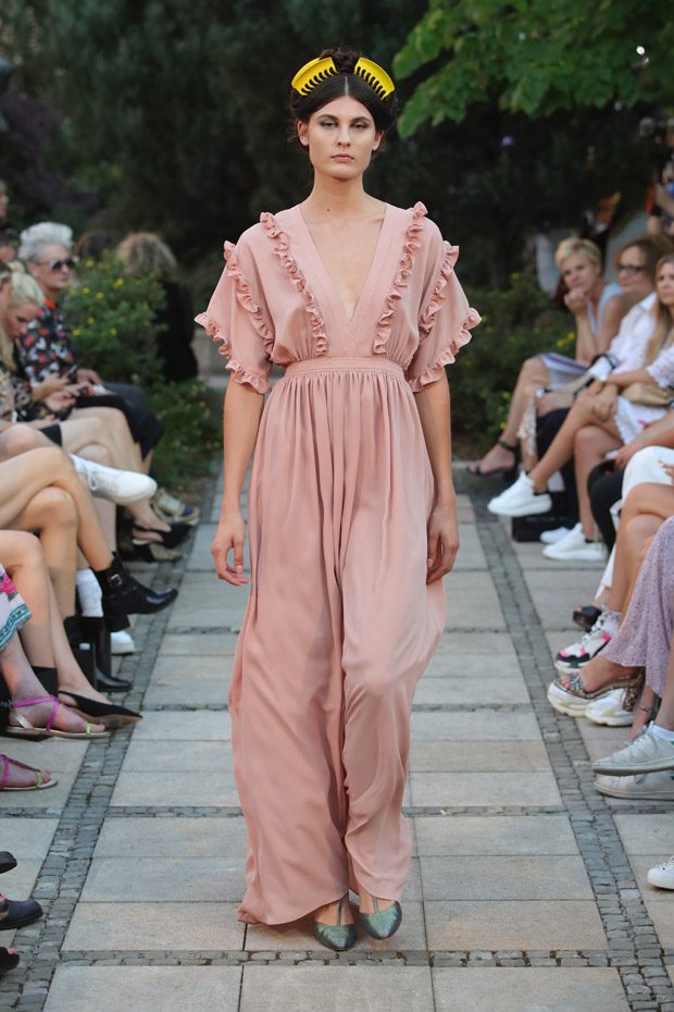 German luxuswear designer Marcel Ostertag presented his Spring Summer 2019 collection titled “Muse” on the 4th of July 2018. As location, the impressive rooftop of hotel Grand Westin Berlin was chosen. That pictureque outdoor location perfectly underlined the mood of this compelling collection. Worth of mentioning is the fact it was Marcel Ostertags‘ first collection that also contained menswear pieces. The collections’ theme “Muse” can be understood as an ode to modern muses that shine because of their personality and attitude towards life and consumption- which means they support sustainability.