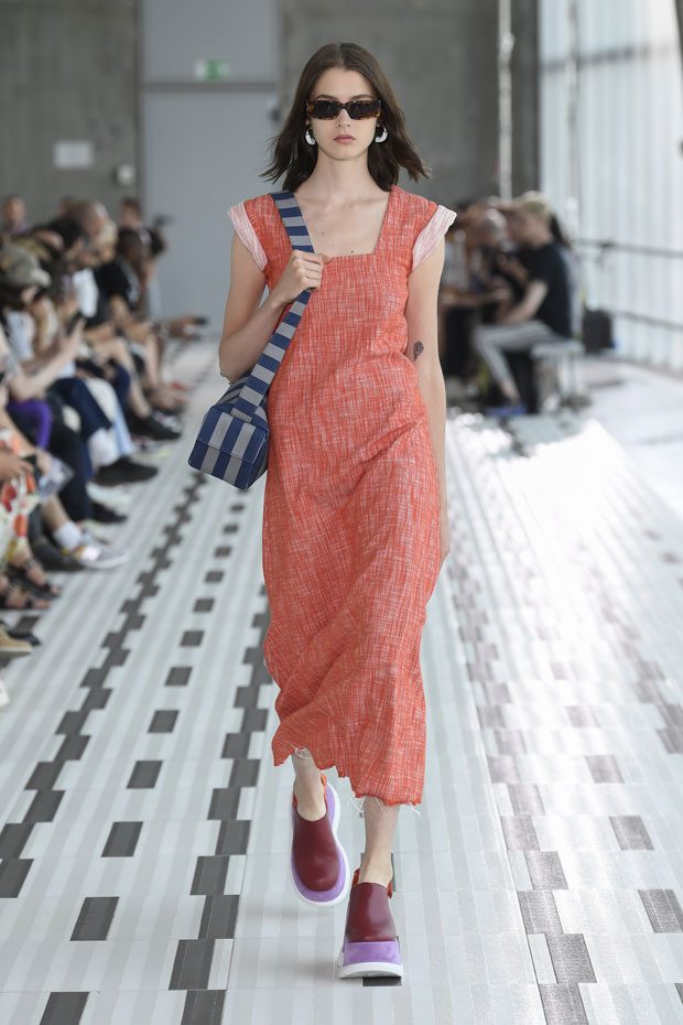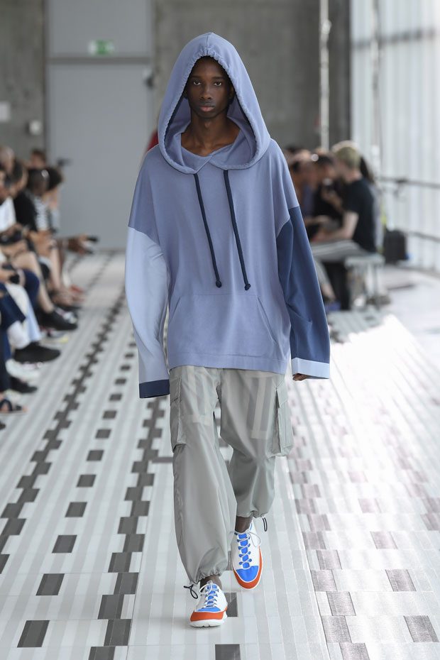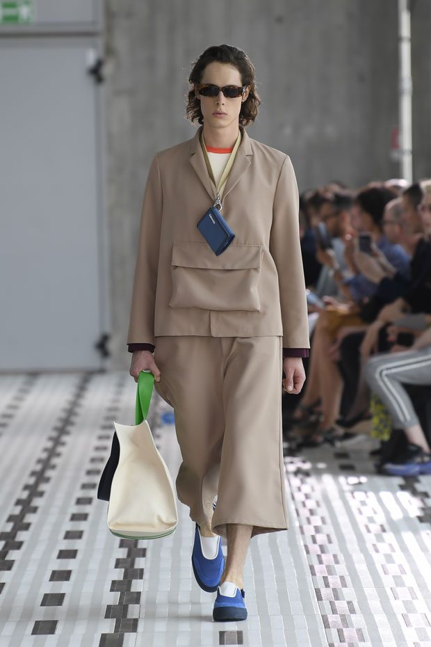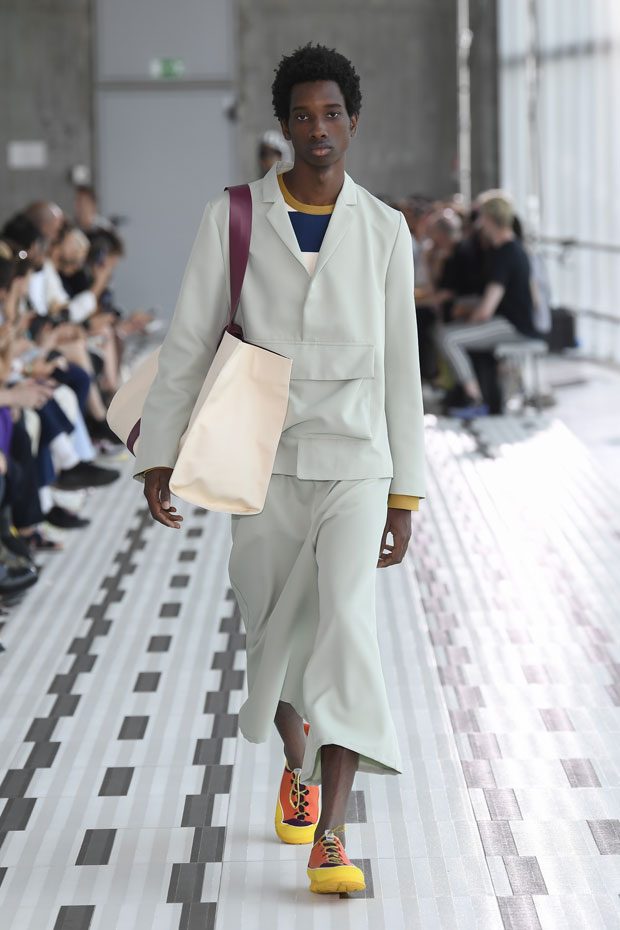 Sunnei presented Spring Summer 2019 menswear collection, as well as the first womenswear collection on Sunday 17th June, during the recently finished Milan Fashion Week. Featuring the clean shapes tailoring in sandy color palette infused with tones of red, orange and blue, the collection takes the inspiration from visual arts and pop culture.