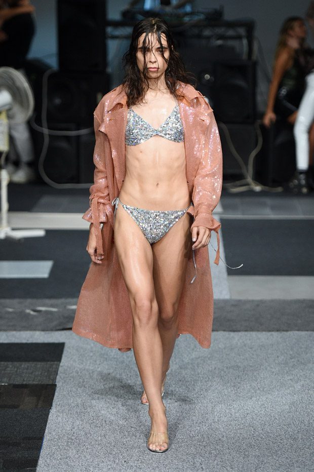 Discover Ashish‘s Spring Summer 2019 The Wet and Wild Collection, inspired by the ‘90s London’s nightlife, presented on Sunday, September 16th during the ongoing London Fashion Week. Models were styled by Anna Trevelyan at CLM, with beauty from hair stylist Sam McKnight at Premier using Hair by Sam McKnight products, makeup artist Isamaya Ffrench at Streeters and the MAC PRO team, and manicurist Michelle Humphrey at LMC Worldwide.