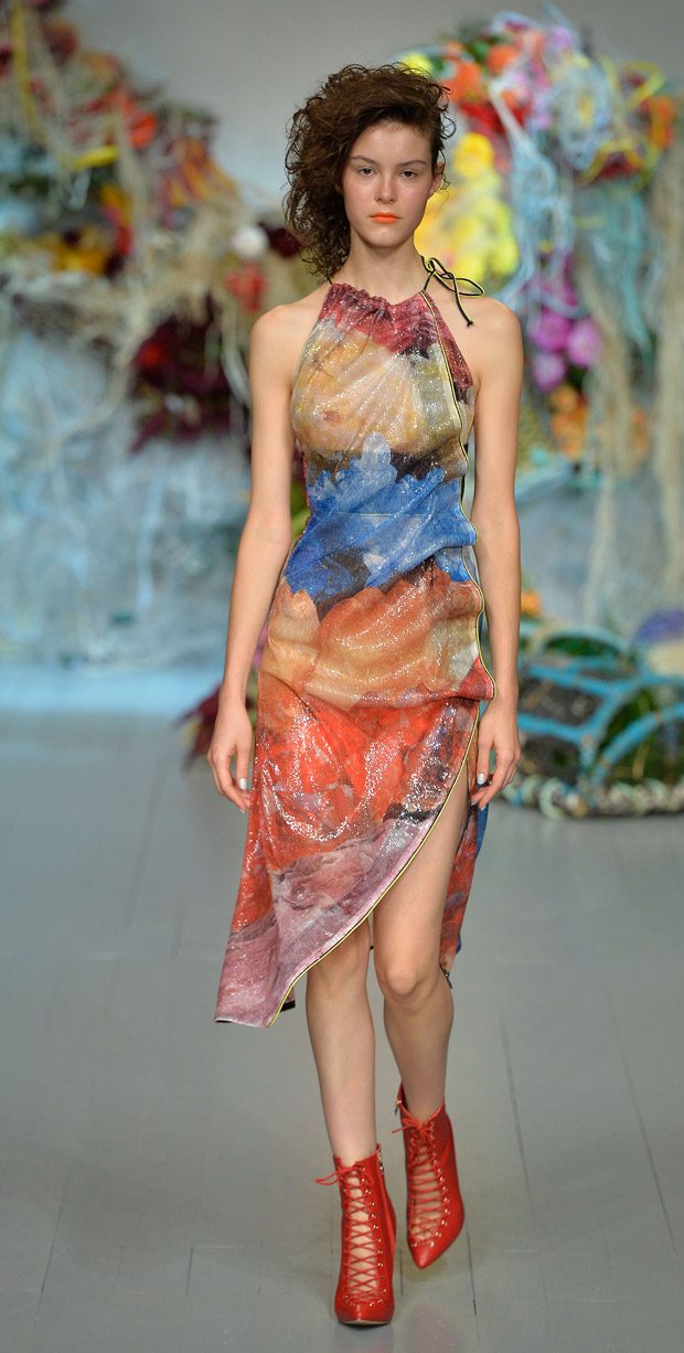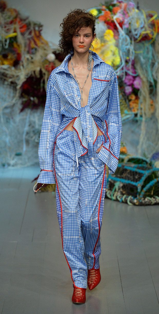 Designers Fyodor Podgorny and Golan Frydman presented Fyodor Golan‘s Spring Summer 2019 Lost & Found Collection, inspired by the oceans and castaway elements found on beaches, such as seashells and pearls as well as plastic waste. For the collection Fyodor Golan teamed up with ‘Plastic Oceans UK’ raising awareness of plastic pollution in the world’s oceans.