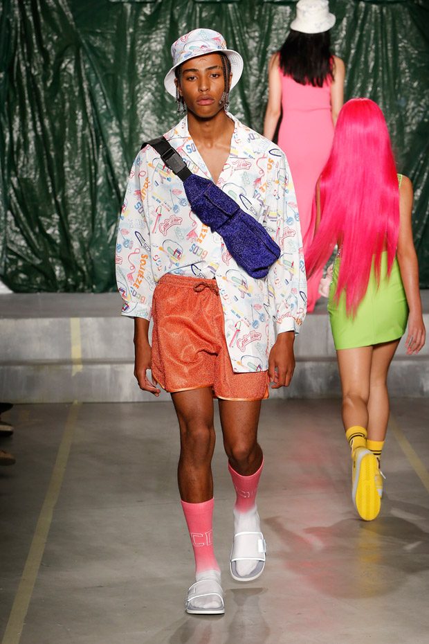 Discover GCDS‘ Spring Summer 2019 The Futuro Beach Collection that explores the era we are living in – with no real values, and the idea of a future where quality actually matters, presented on Saturday, September 22nd, during the ongoing Milan Fashion Week. For the collection GCDS collaborated with Onitsuka Tiger, one of the oldest shoe companies in Japan, and with Pokemon.