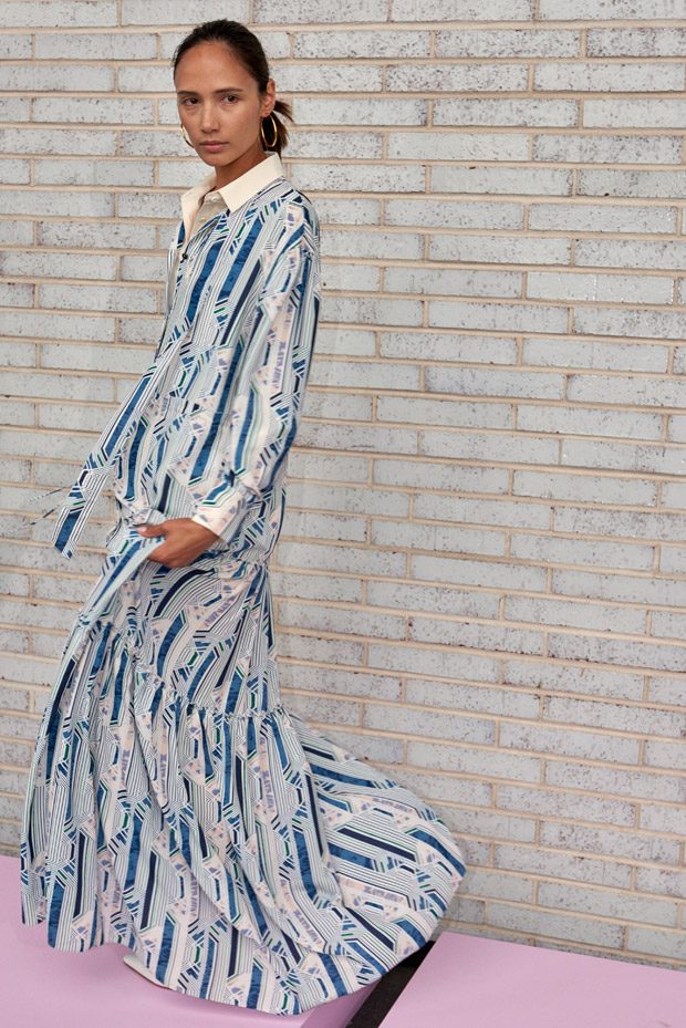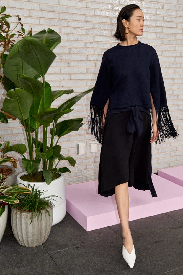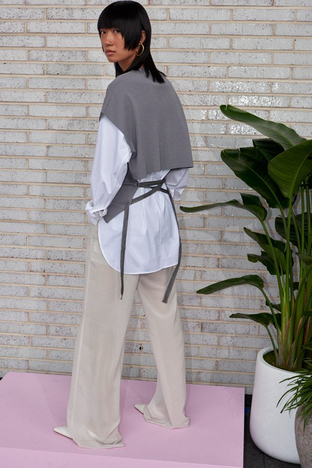 “The inspiration came from the patterns of layers of texts or drawings that were created on the reused parchment. Throughout the collection, you will find lots of layering details especially with see-through fabrics. Also, we brought back exaggerated fringes and raw edge details which are a reinterpretation of the old parchment’s edge. From SS19 collection line, we would like to highlight trendy linen fabric with a powdery feel which also ties back to the concept and inspired from dusty old parchments.“