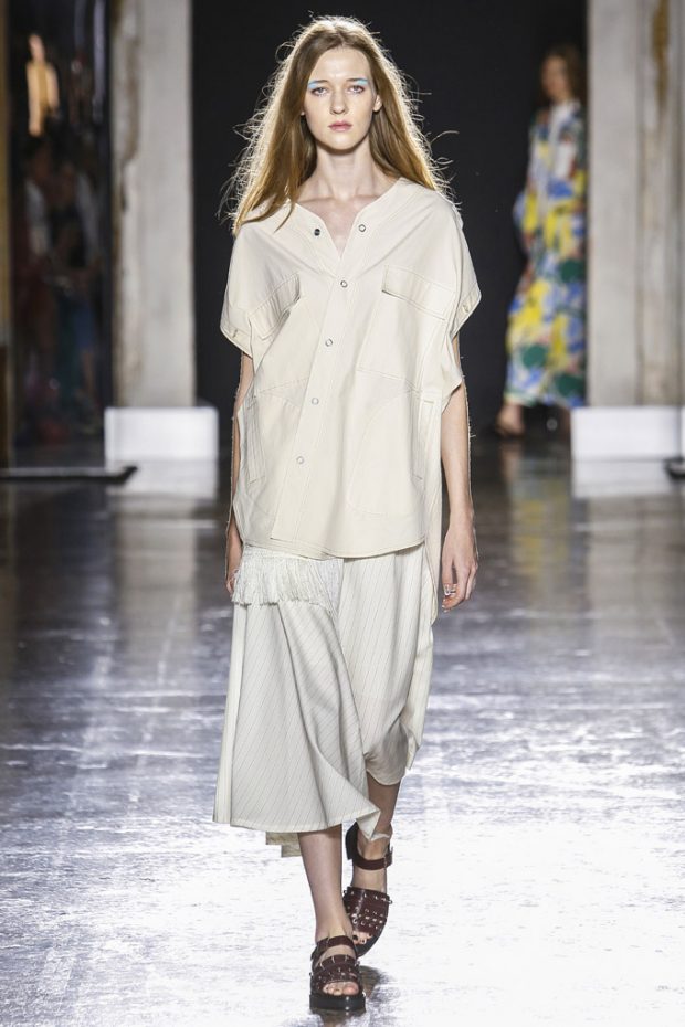 This season, the brand presents a refined and sophisticated workwear. The contemporary tailored styles are more wearable and casual following today’s wants and needs. However, elegance remains the main goal. Jumpsuits are reinvented with a sophisticated twist through soft feminine fabrics such satin and natural cotton.