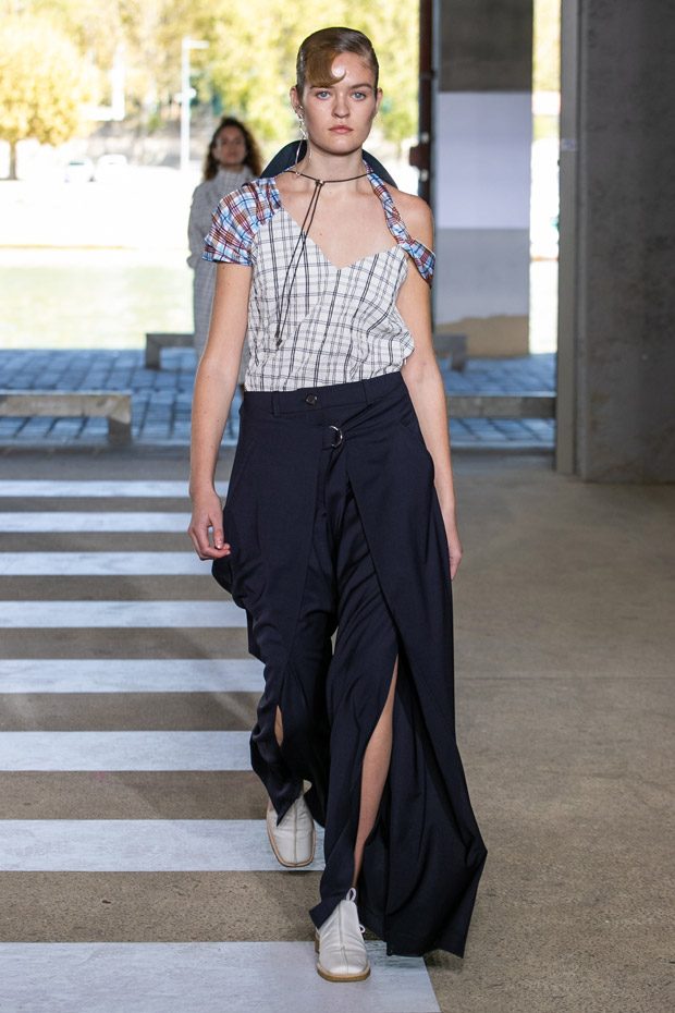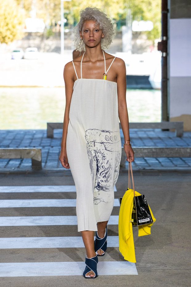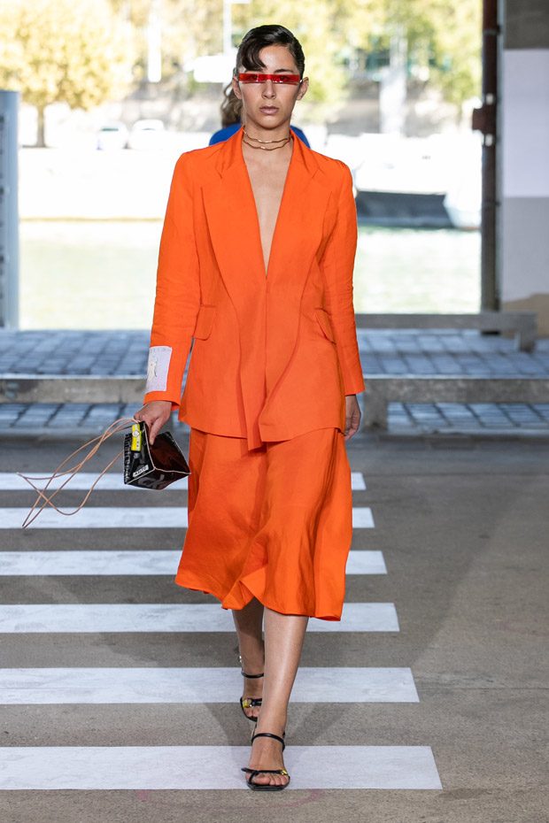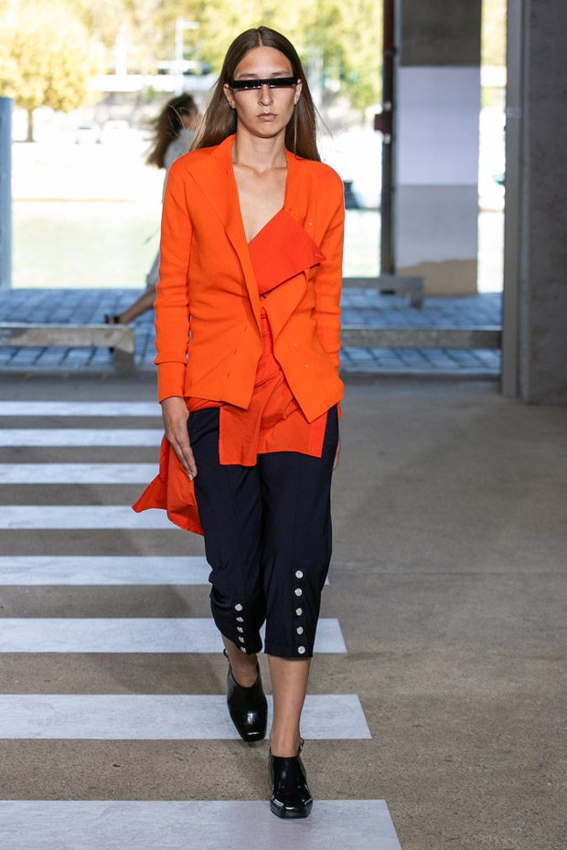 “For the summer, AALTO woman’s arena is the office, or business in its broader sense. It is a challenging environment which has been dominated by men, while pushing women into a cliché. In this collection, the rigor and the uptight conservatism—or perversity—of the office dress code get a radical update, from colors (intense orange, yellow, Patagonia blue) to volumes (deconstruction, naïve flat structures) to textures (wrinkled, terry, technical stretch). What defines the new officewear is its freedom. There are no more barriers or limits; what really counts is the attitude.