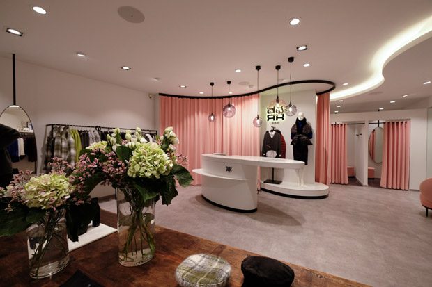 For the interior design of this store, architect Franz Werger was responsible. Rose velvet, elements made of solid timber plus an eye- catching, sophisticated Persian carpet play a central role in the design of this store. This vivid mix and match of contrary elements, old and new ones, is highly interesting to observe. What may sound like a contradiction is incredibly well matching together. On the one hand the massive table made of solid timber, the Persian carpet and on the other hand highly modern dressing rooms. Worth of mentioning is also the fact the Persian carpet originally belongs Martina Buckenmaier, the CEO of RIANI. With giving it to this store, she expressed her deep affinity to Muenster. Completely charming!