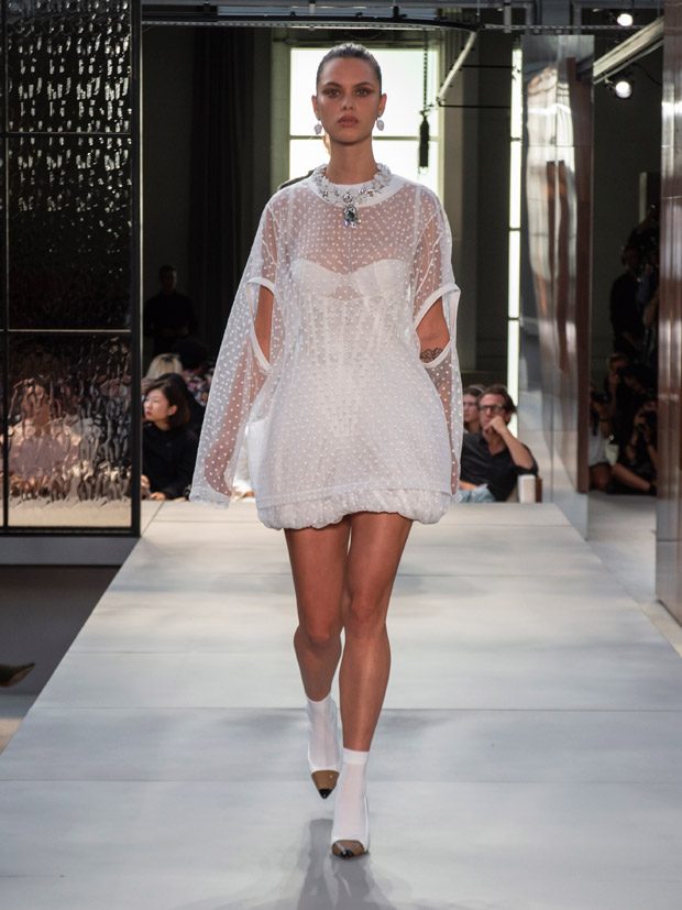 Designer Riccardo Tisci presented Burberry‘s Spring Summer 2019 Kingdom Collection, that celebrates individuality, eccentricity, diversity, and unique attitude of Britain, on September 17th at brand’s new show venue in Vauxhall, during the ongoing London Fashion Week. This is Riccardo Tisci’s debut collection for Burberry, since he was appointed Chief Creative Officer at British fashion house on March 12th, 2018. Among many supermodels who walked the show were Stella Tennant, Natalia Vodianova, Mariacarla Boscono, Freja Beha Erichsen, Irina Shayk, Jourdan Dunn, Lily Donaldson, Anok Yai, and Catherine McNeil.