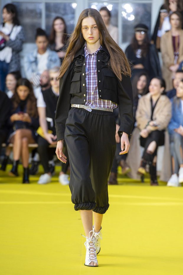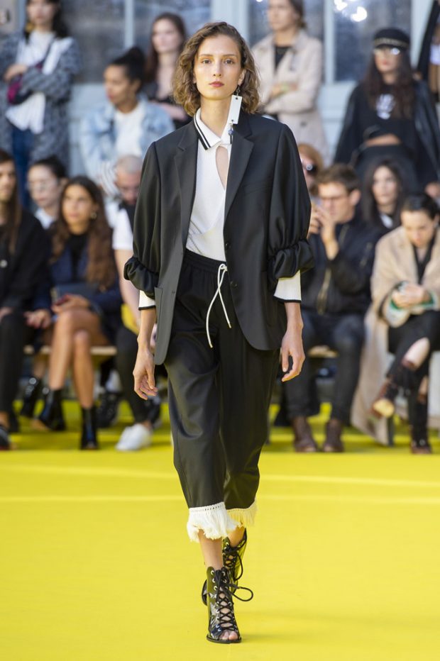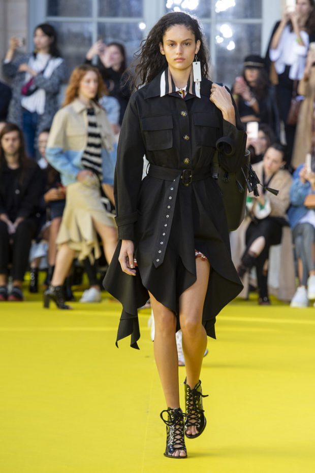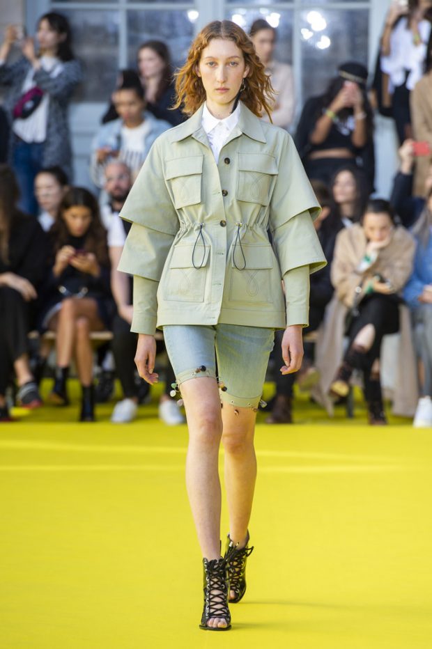 The collection is a mix of the urban Parisian codes and the freedom of dreamy tropics. Masculine and utilitarian touches as cargo pockets, cords and pinstripe motifs are blurred with floating, gathered and draped shapes that create an edgy, yet chic look for a modern, city dwelling women. The arty, sporty and rebel spirit run allover the collection. Black leather straps are mixed