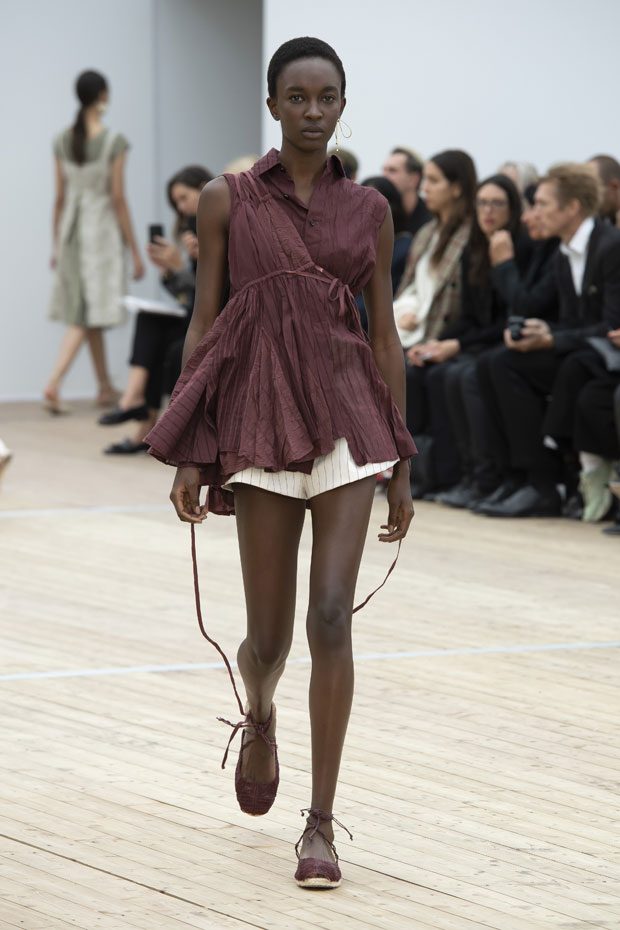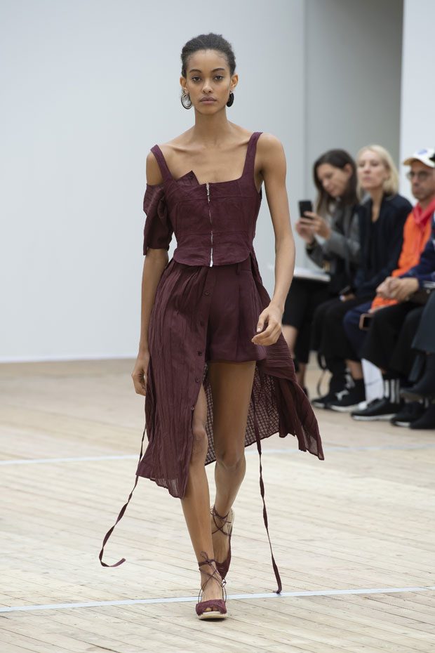 Beautiful People presented womenswear collection entitled Side C during the recently finished Paris Fashion Week. The Spring Summer 2019 collection explores the metamorphic process of dressmaking, construction and reconstruction, using natural fabrics and colors.