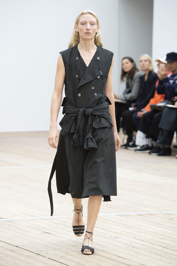 In between. Inward getting outward while front gets to back, and vice versa. Endlessly, like a puzzle being solved and unsolved, finding that solutions are the solution, expanding possibilities. Multiplicity as the art of not being one thing. An earthy wardrobe of transformative pieces open to numberless transformations. Dresses that wrap and morph. Jackets getting peeled, coats being sliced. Side C. An interplay of twisting and turning, lacing and unlacing, lining and un-lining. The process is reversible rather than irreversible, fluid rather than static. No need to be A or B, but a quest to be both or neither. The end is the beginning and the beginning is the end. Constructing and reconstructing, exploring the metamorphic process of dressmaking as countless ways to wear a piece, freeing the individual. An easy, natural game. Natural fabrics. Natural colors. Natural light. Organic earthiness of materials: dyed with wine, shrunken with salt, absorbing the process onto the surface and in the fibers. From A to C and from C to B. Endlessly. A way to look at classics that makes them look extraordinary. A way to move forward and create something new. – from Beautiful People