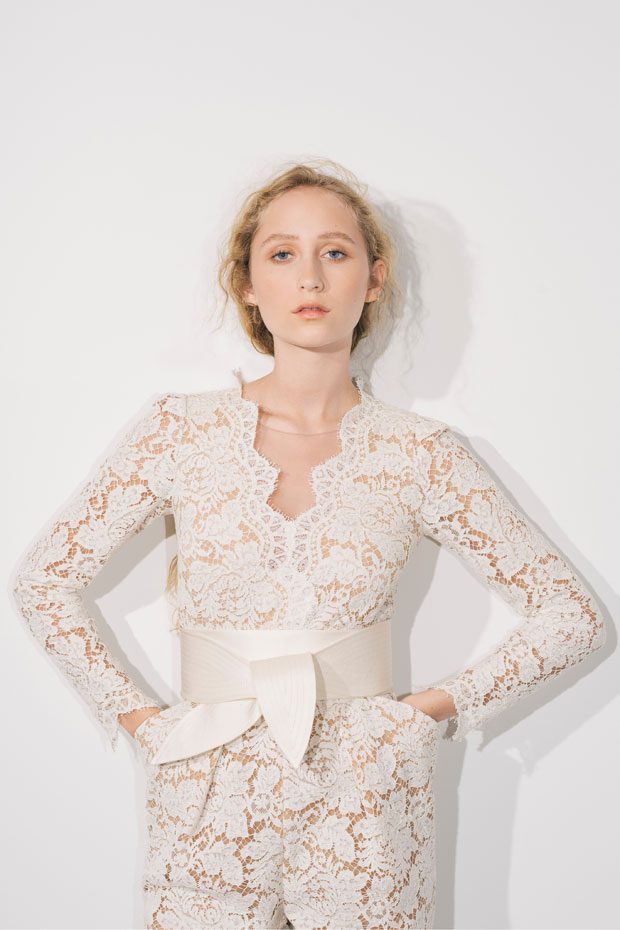 Stella McCartney “Made with Love” builds on the brand’s signature eveningwear offering, and follows the exclusive limited edition “Made with Love” dress that was launched in June 2018 to celebrate the opening of the new 23 Old Bond Street store. The exclusive limited edition gown, that was available in lily white and onyx black, featured a high neck and deep low back and was inspired by the bespoke wedding reception dress designed for the Duchess of Sussex. In keeping with the brand’s celebrated silhouettes and taking a modern approach to bridal wear , the new collection launches with seven elegant and sleek bridal dresses, a stylish lace embroidered jumpsuit (available in both pure white and a rich scarlet red), and a sophisticated tuxedo in ivory. Staying true to Stella’s commitment to sustainability, the collection is crafted using her luxurious sustainable viscose, as well as modern version of traditional couture fabrics including lace and chiffon. – from Stella McCartney