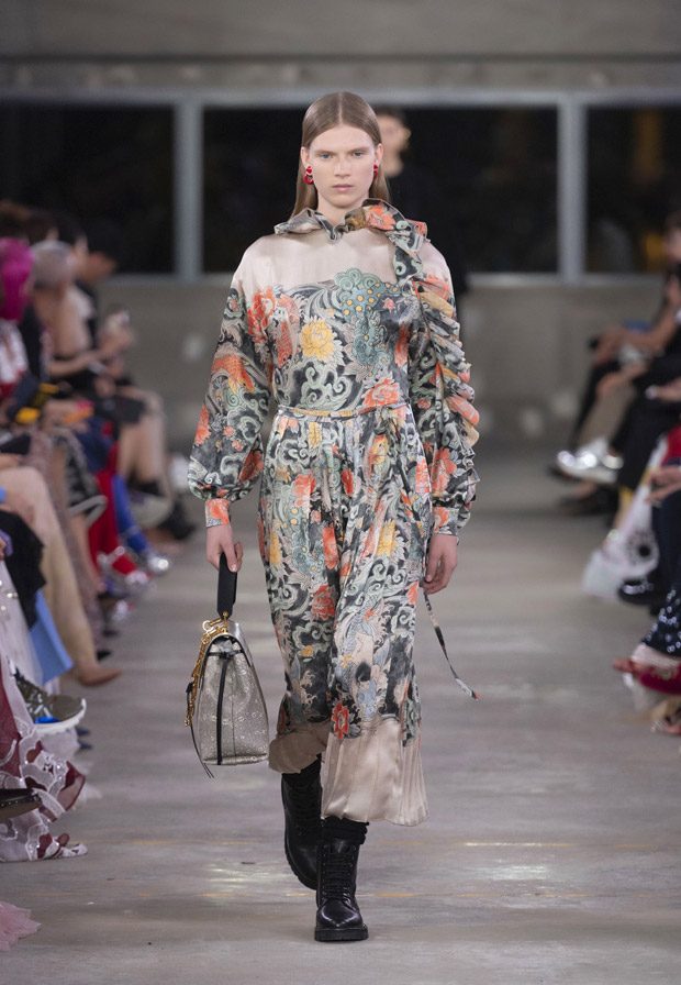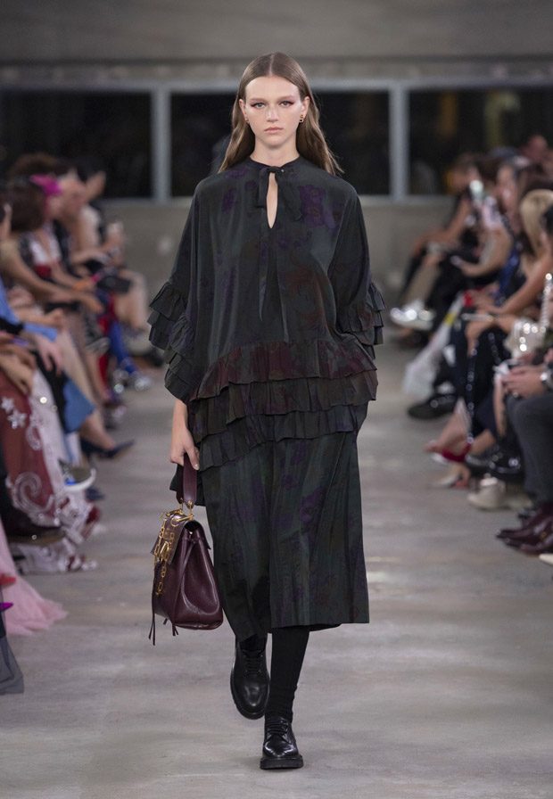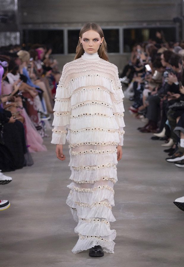 “For the Valentino Pre Fall 2019 Collection by Pierpaolo Piccioli distant elements meet and merge in the interval that separates them, showing the gesture of clashing opposites instead of hiding it. The non perfect as the language of ever-evolving beauty. Time as a tangible quality, as intrinsic value, as a sign that affects surfaces and ignites feelings.