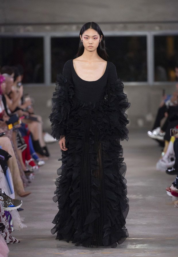 Intermissions allow meanings and possibilities to expand. The space between things is a place for pondering and inventing. A syllable captures this suspended idea of construction for the Valentino Pre Fall 2019 Collection by Pierpaolo Piccioli: Ma.