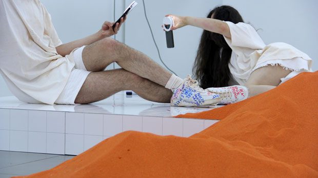 Acclaimed French artist, Camille Henrot, explores the relationship between religion and globalization in a video installation titled Saturday.