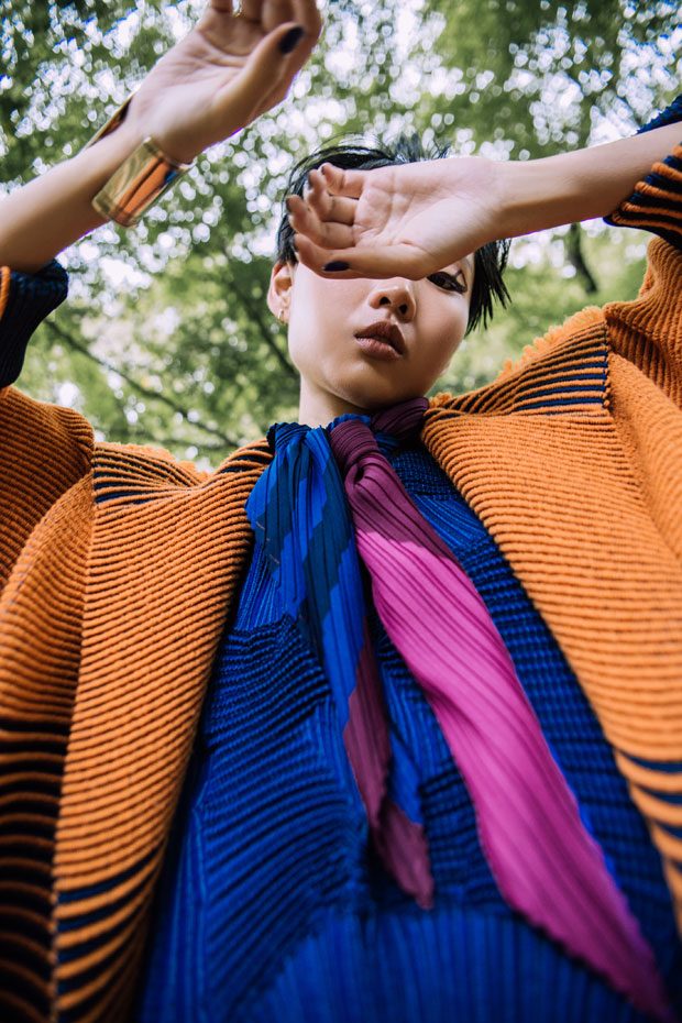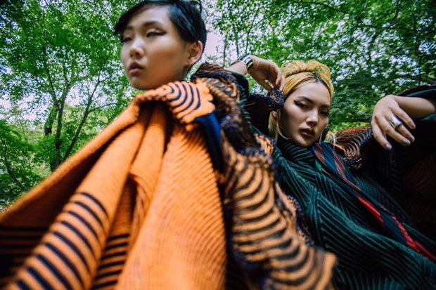 For the session models are wearing selected pieces from MSGM, Maison Kitsuné, Issey Miyake, Yohji Yamamoto, Futur, Y-3, Fantastic Man, Adidas Originals.