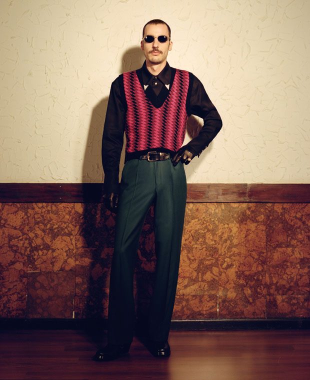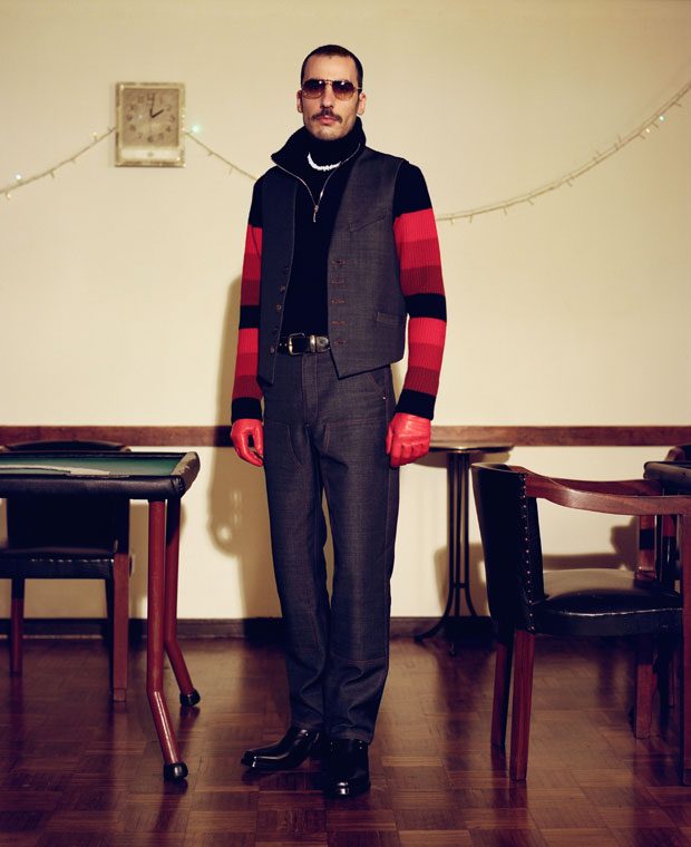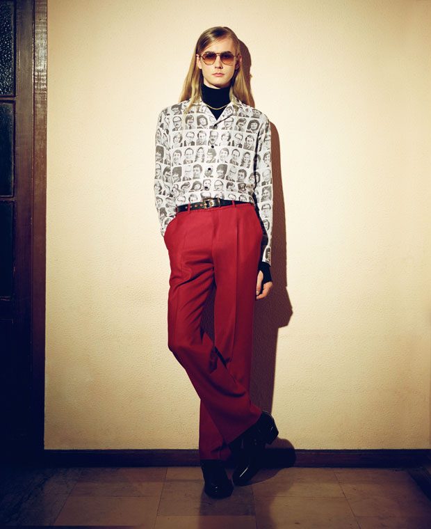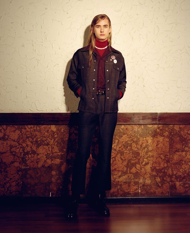 Researching Detroit from the 70s and the authentic spirit of the city brought the designers to the prolific work of Dave Jordano. A Detroit native photographer, whose work documented the ins and outs of the city’s life throughout the 70’s. A glimpse into the various subcultures of Detroit brings inspiration for the season’s lookbook, providing a rich cast of characters representative of the eccentric Detroit locals. The collection once again takes reference to the co-designers grandfather and 92 year old muse, Ernest W. Baker. A company brochure was inspiration for the seasons print, as 12 portraits are listed under the headline “1973 E.W. Baker Advertising, Employee’s of the Month.” Both playing off a kitsch American tradition and paying homage to the real people and workers of Detroit, brings the collection full circle. – from Ernest W. Baker