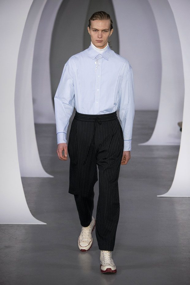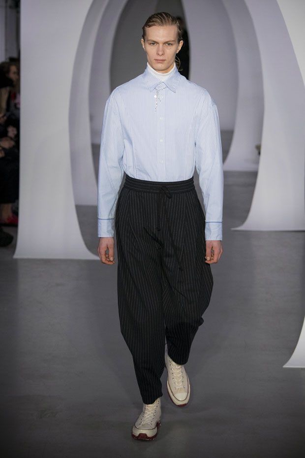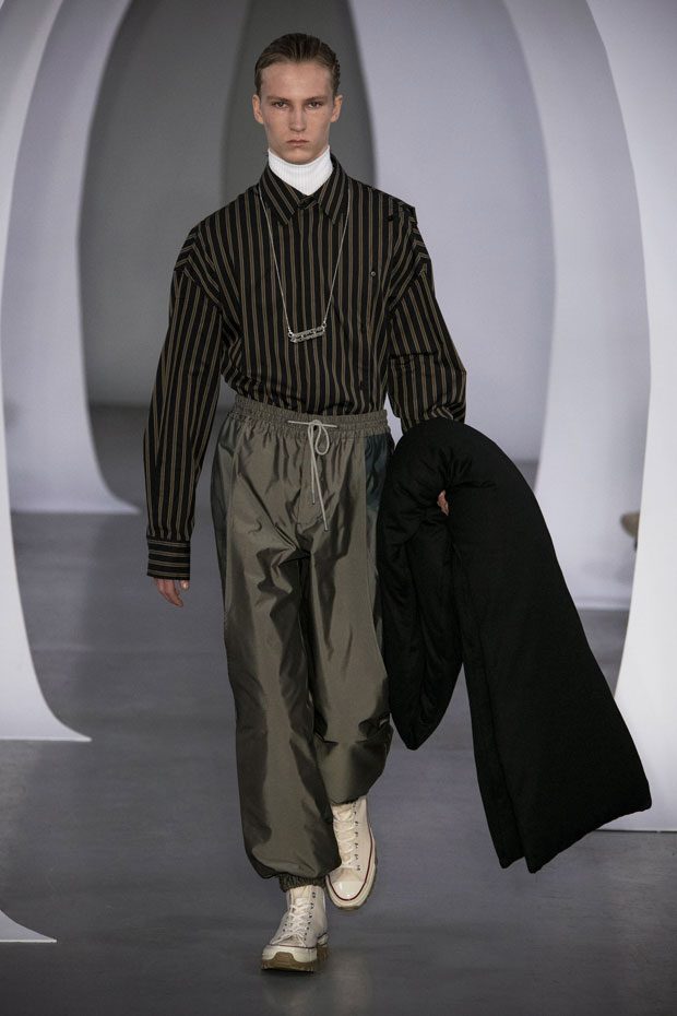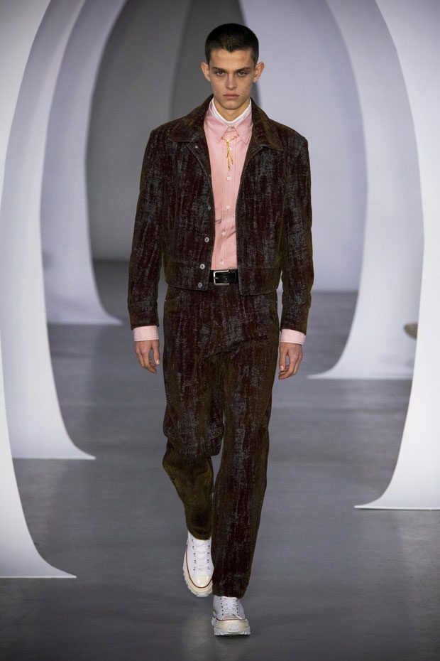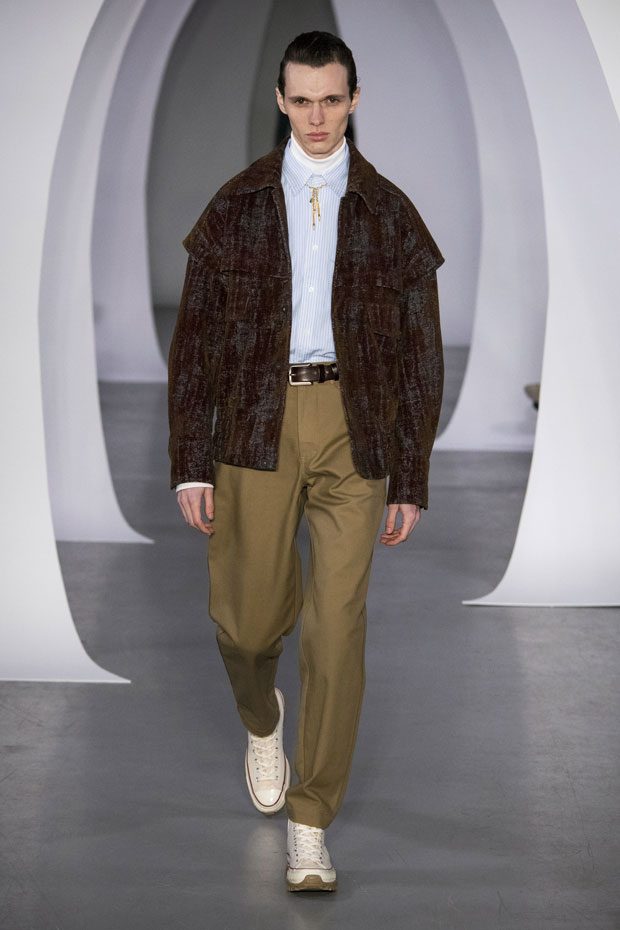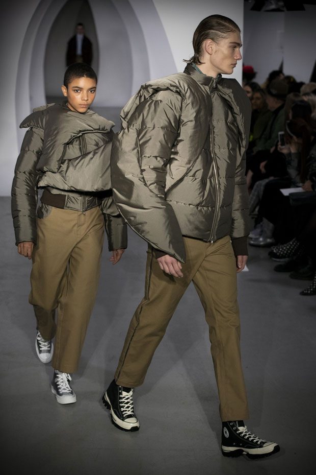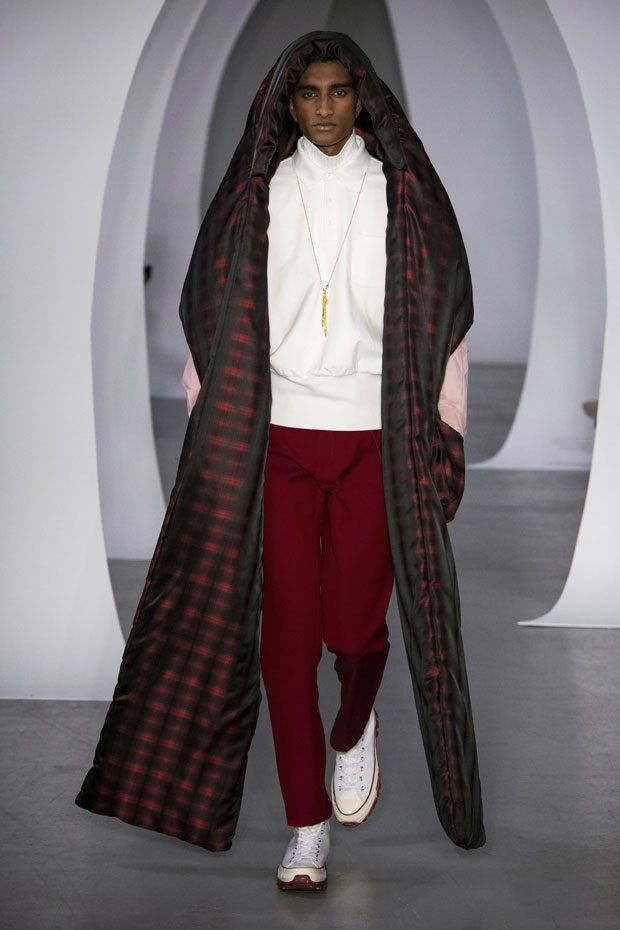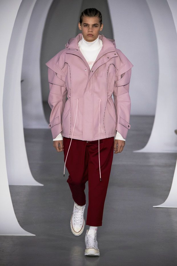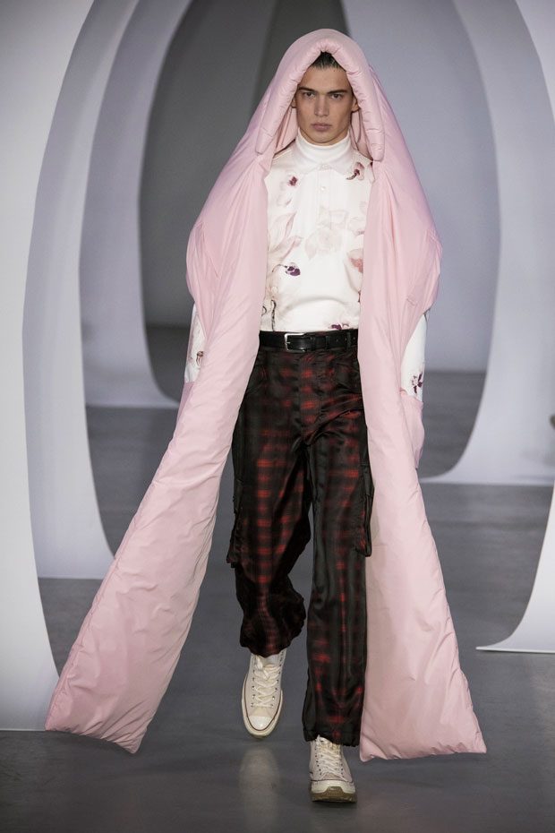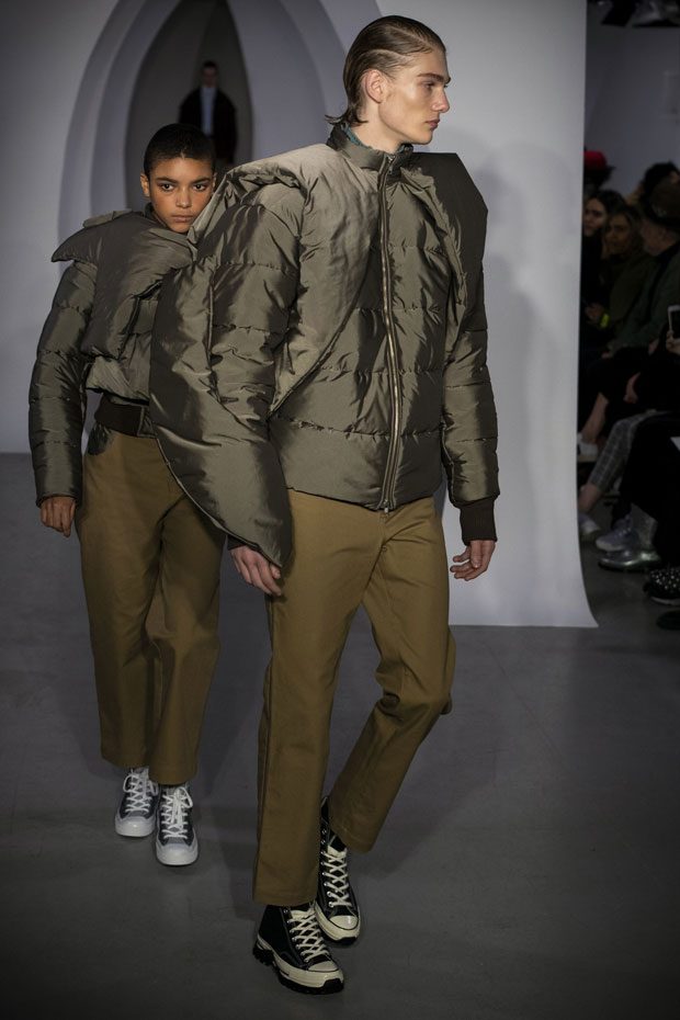 Chinese designer Feng Chen Wang presented Fall Winter 2019.20 collection during the ongoing London Fashion Week Men’s. Inspired by Feng’s personal history and Chinese heritage, the collection translates the symbols of designer’s childhood to the clothes.