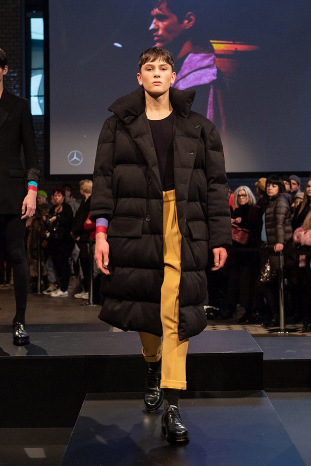 The detail- awareness of this collection definitely deserves devotion, for instance over- sized tendencies are used repeatedly, may it be in his jackets or coats. One coat is even provided with cut- offs at the sleeves. Completely compelling! The collars of the coats and jackets are often worn raised. Thus, the overall image of these outfits stays incredibly unique but always wearable. In cooperation with Monokel, Mavic and Falke the performance at the Mercedes- Benz Fashion Week Berlin, we left the show with lots of stylish inspirations and it was a great start into the fashion year 2019.