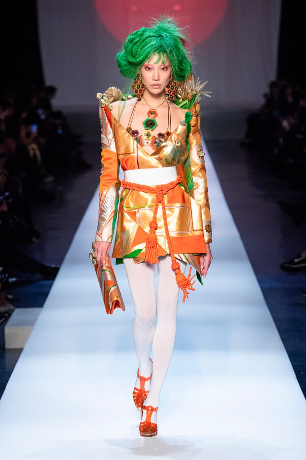 See more of Jean Paul Gaultier‘s SS19 Haute Couture nautical inspired looks with Japanese elements, below:
