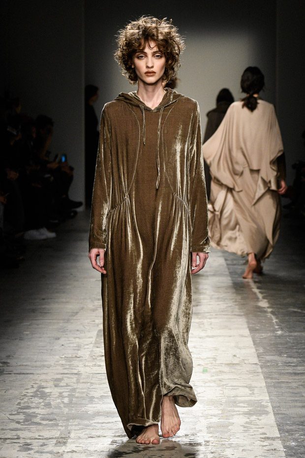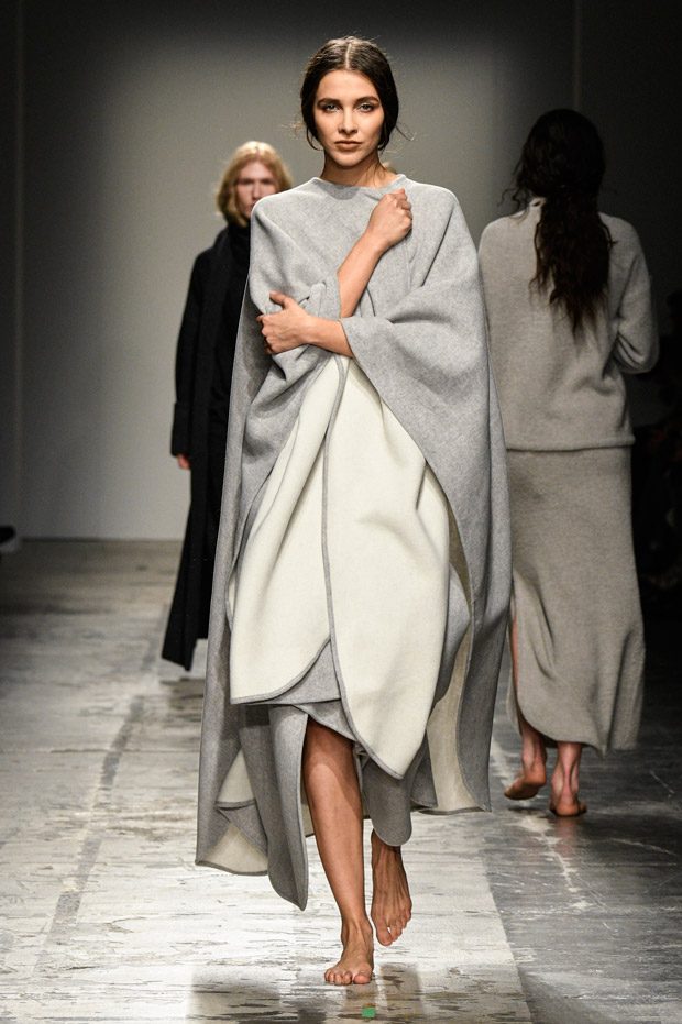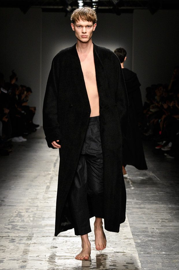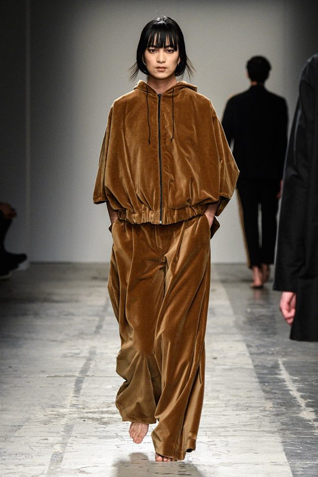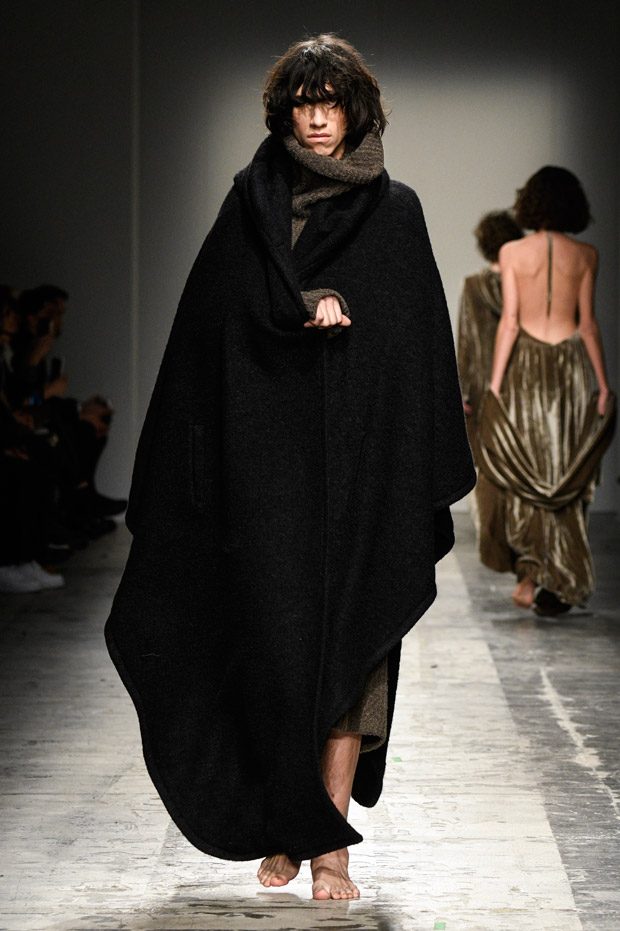“Soft volumes wrapping the body to protect it. Absolute coats that become a shelter for nomadic individuals with a pure style. Flexible clothes free of unnecessary frills. A relaxed attitude that revitalises iconic garments with a clearly perceivable modernity. An elegance ad infinitum distinguished by a fluidity that accompanies the body without oppressing it.