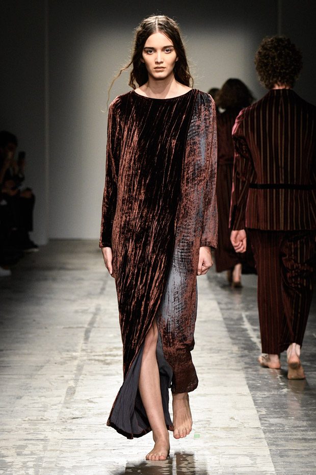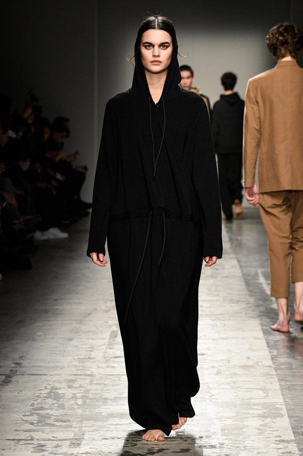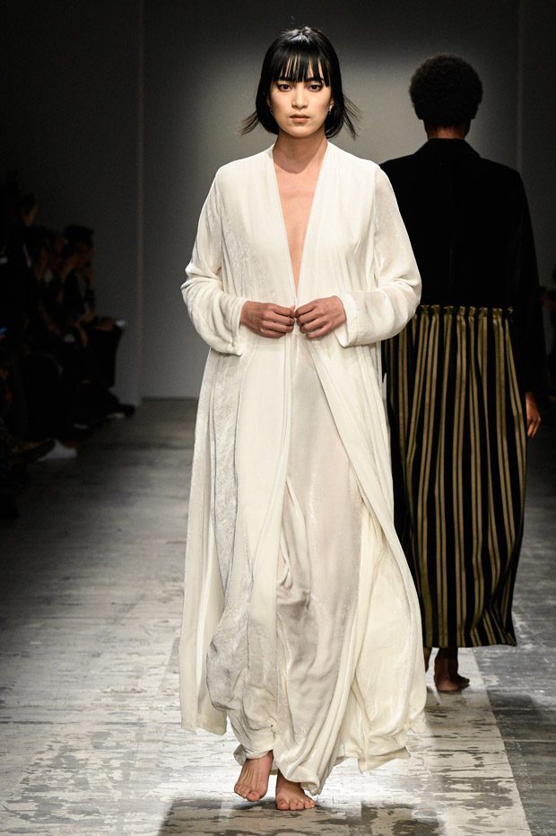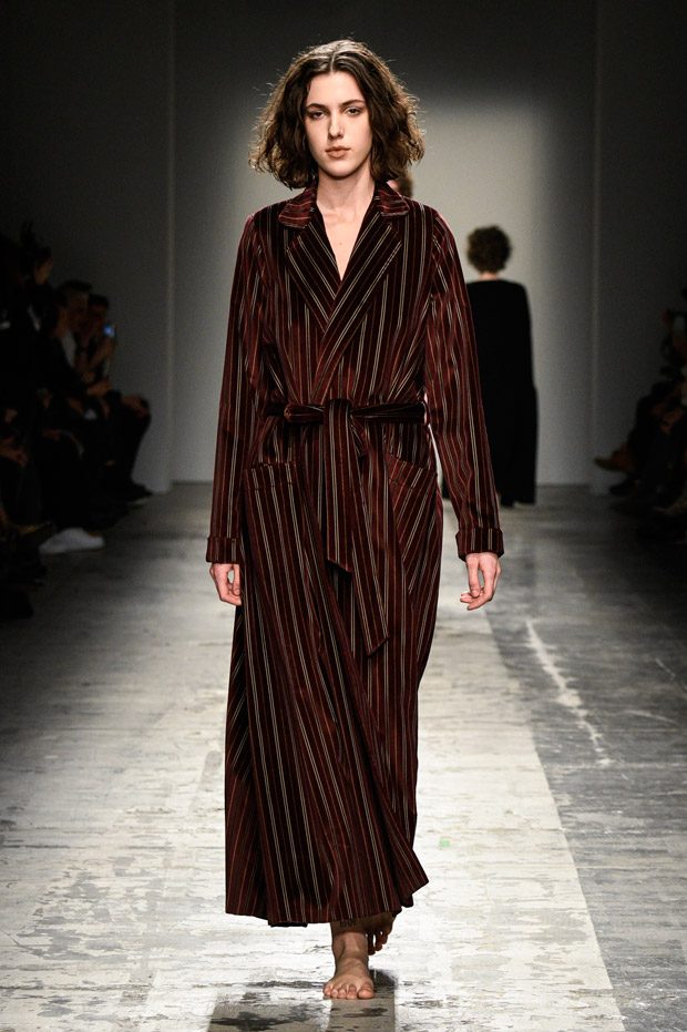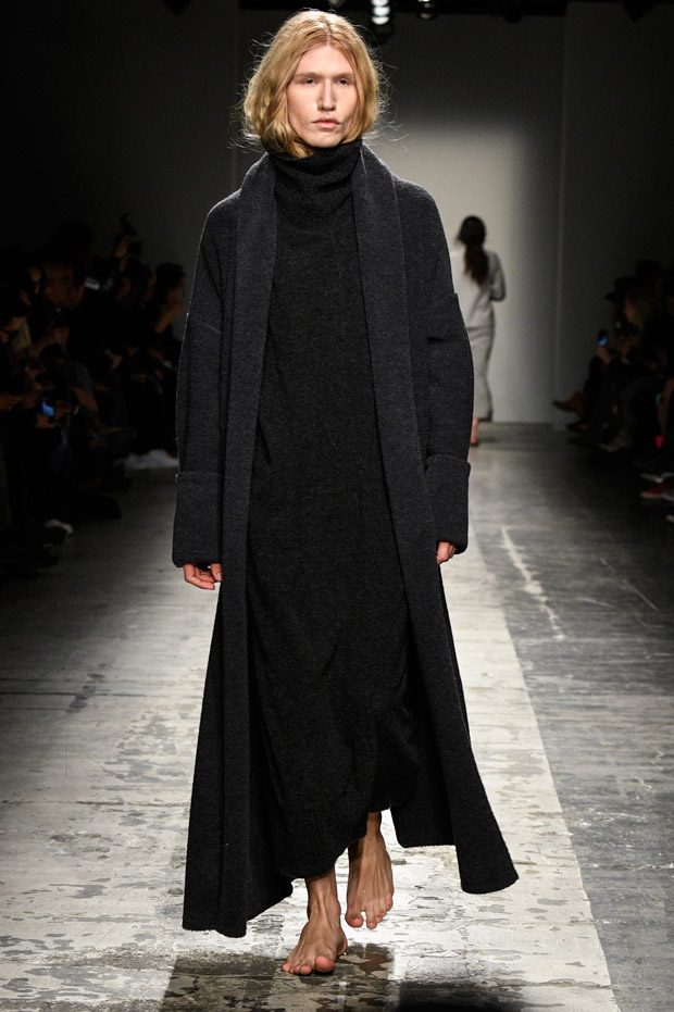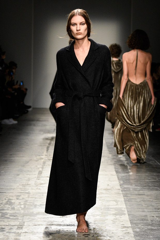 “Soft volumes wrapping the body to protect it. Absolute coats that become a shelter for nomadic individuals with a pure style. Flexible clothes free of unnecessary frills. A relaxed attitude that revitalises iconic garments with a clearly perceivable modernity. An elegance ad infinitum distinguished by a fluidity that accompanies the body without oppressing it.