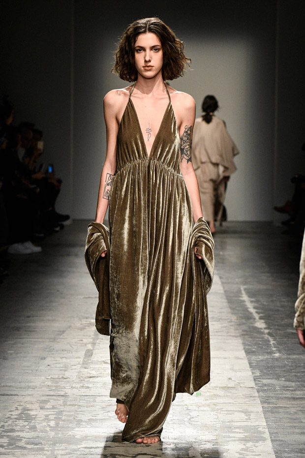 Designer Sabato Russo presented Sartorial Monk‘s Fall Winter 2019.20 collection, that explores idea of the body being the form through which the soul expresses ideas and thoughts with non-verbal codes and gestures, during the last day of the recently finished Milan Fashion Week.